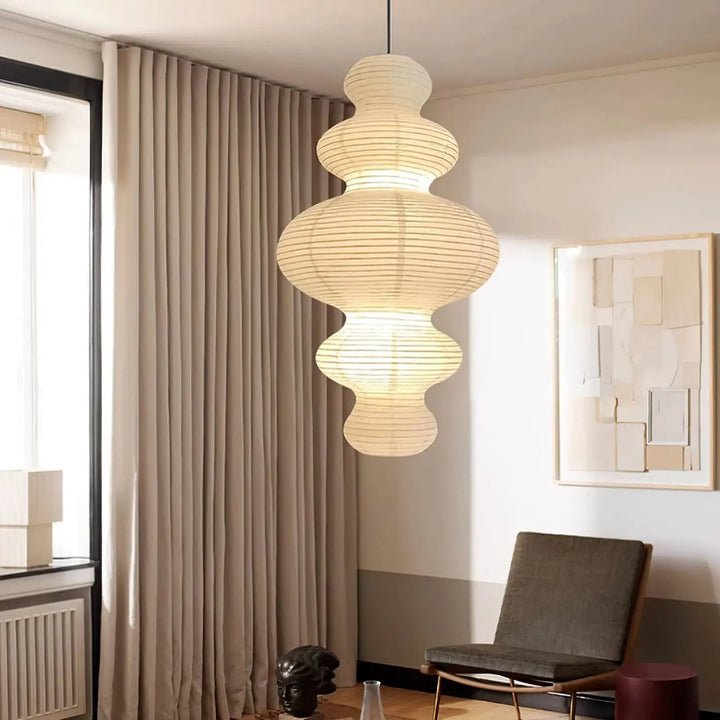 Transform your space with the Akari Juni Pendant Lamp - a true testament to exquisite craftsmanship and luxury. Made with delicate rice paper, this sculptural light adds a visual element unlike any other. Elevate and illuminate your room with refined beauty and superior quality.