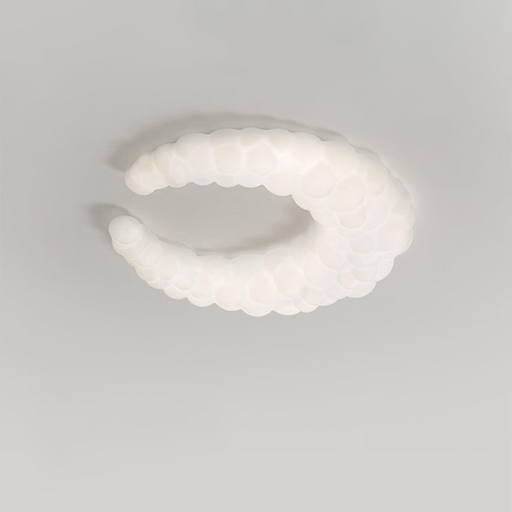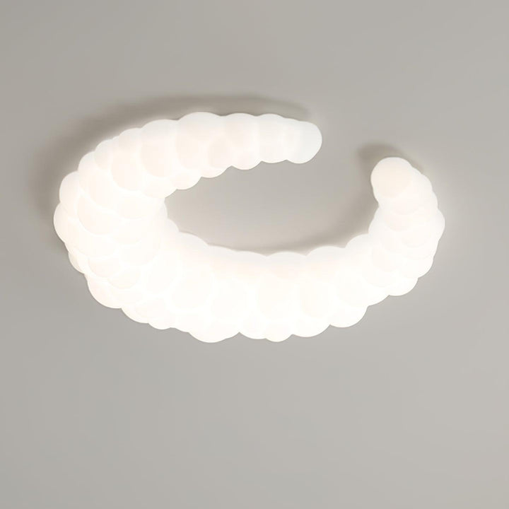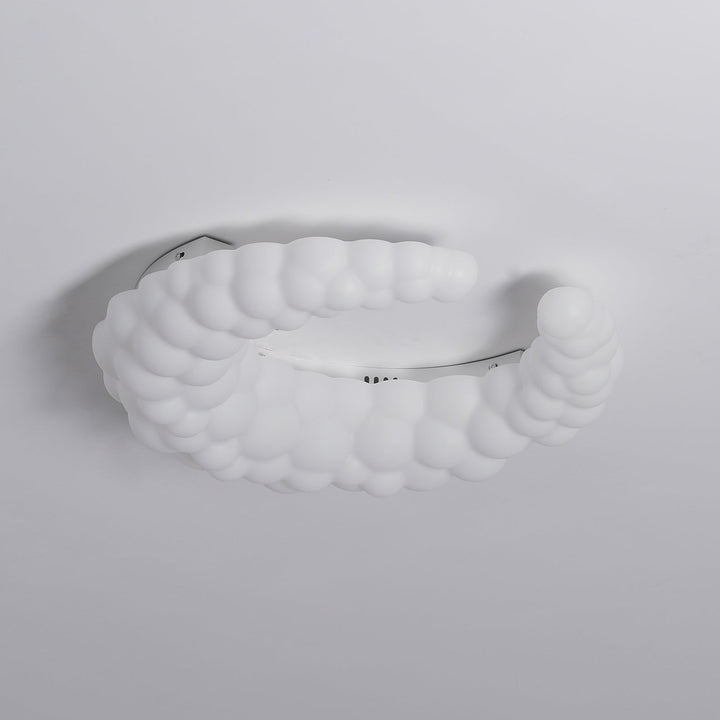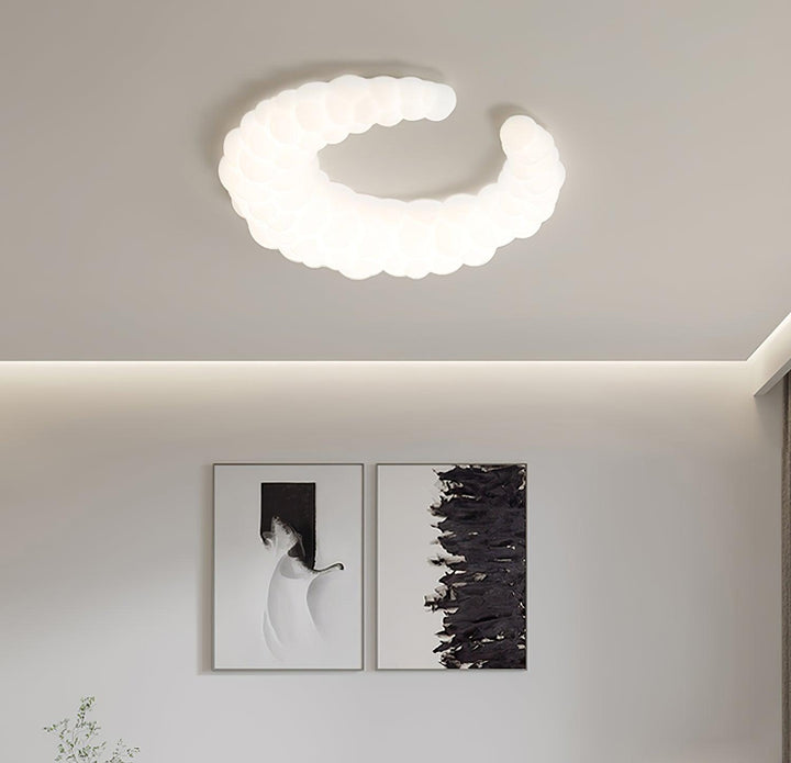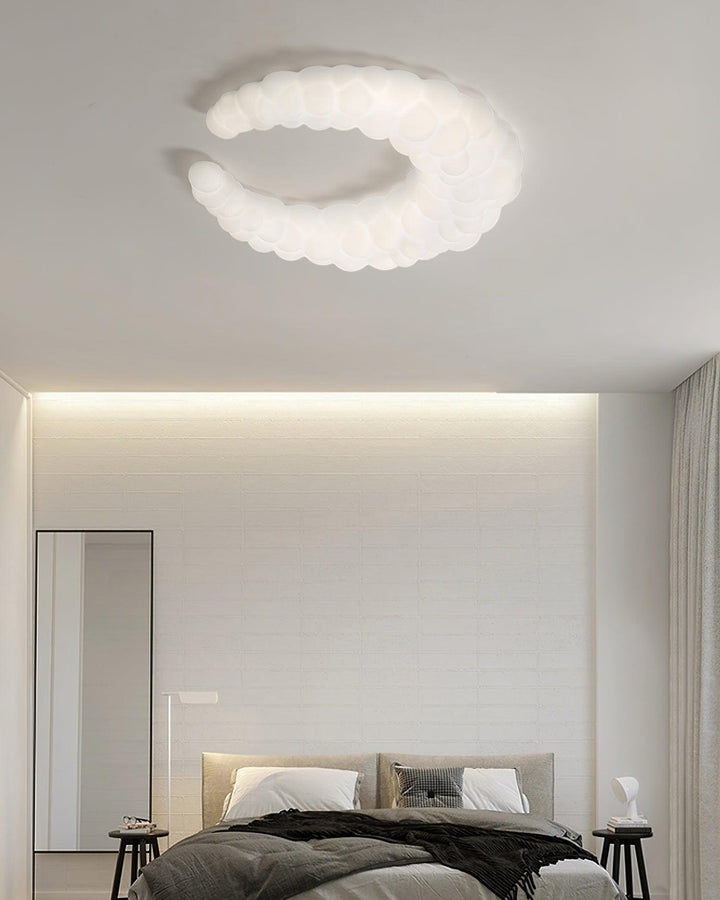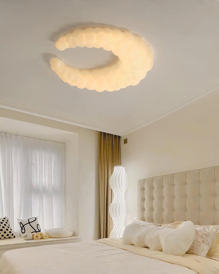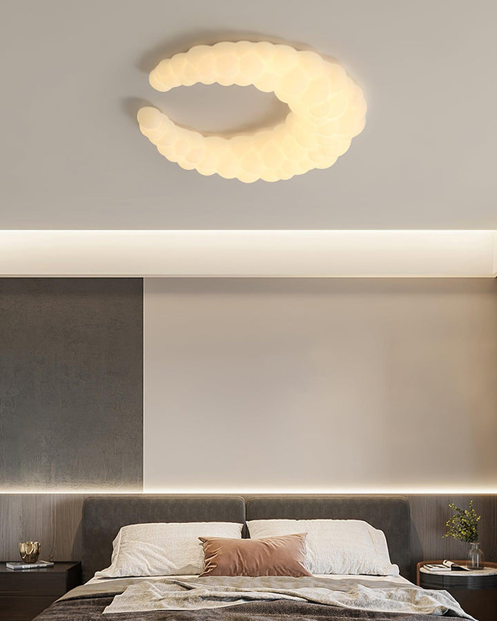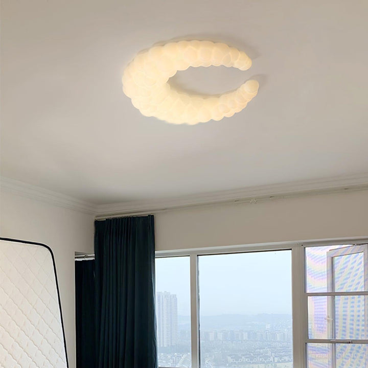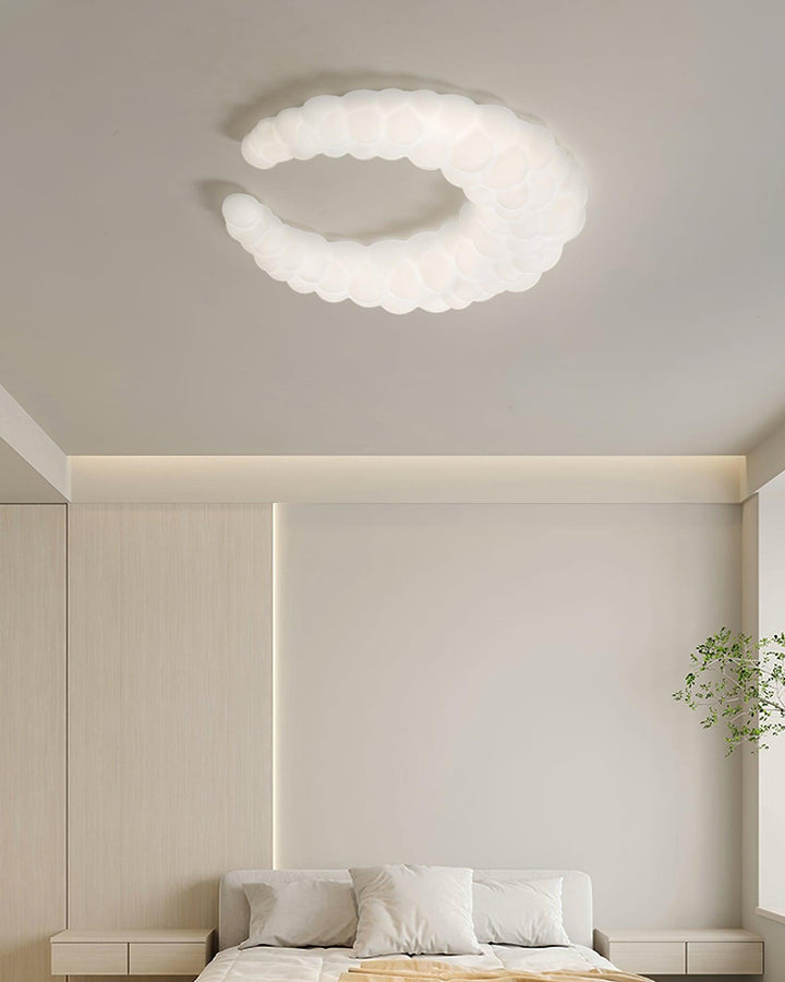 The contemporary ceiling lamp in white finishes can go with any style of decor The Moon-shaped shade resembles the aura in the air. Furthermore, the light is a halo-shaped ring as well as the bulbs that are LED built into the frame, brimming with sentimental love.