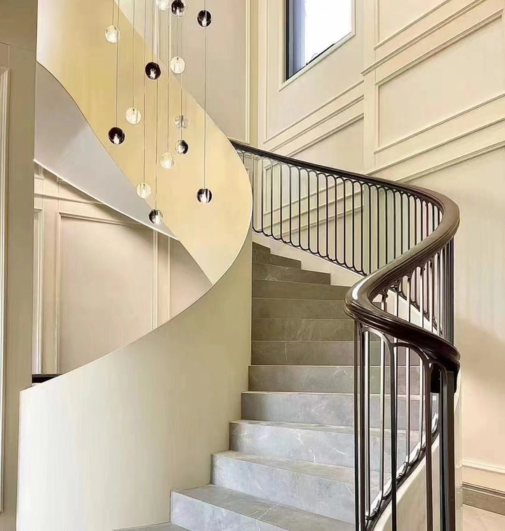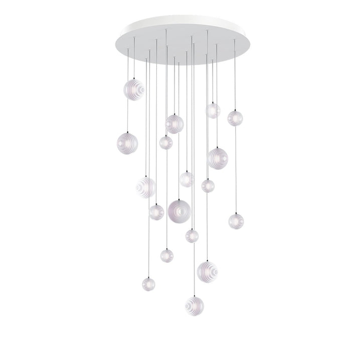 The Vakkerlight Cosmic Sphere Cascade Chandelier is a mesmerizing blend of art and illumination. Featuring multiple spherical lights in soft, muted tones, suspended at varying lengths from a circular ceiling plate, it evokes the beauty of celestial bodies floating in space. The textured surfaces of the spheres diffuse light gently, creating a dreamy, ambient glow. Perfect for adding a touch of otherworldly elegance to stairwells, dining rooms, or living spaces, this chandelier from Vakkerlight seamlessly combines creative design with enchanting lighting effects.