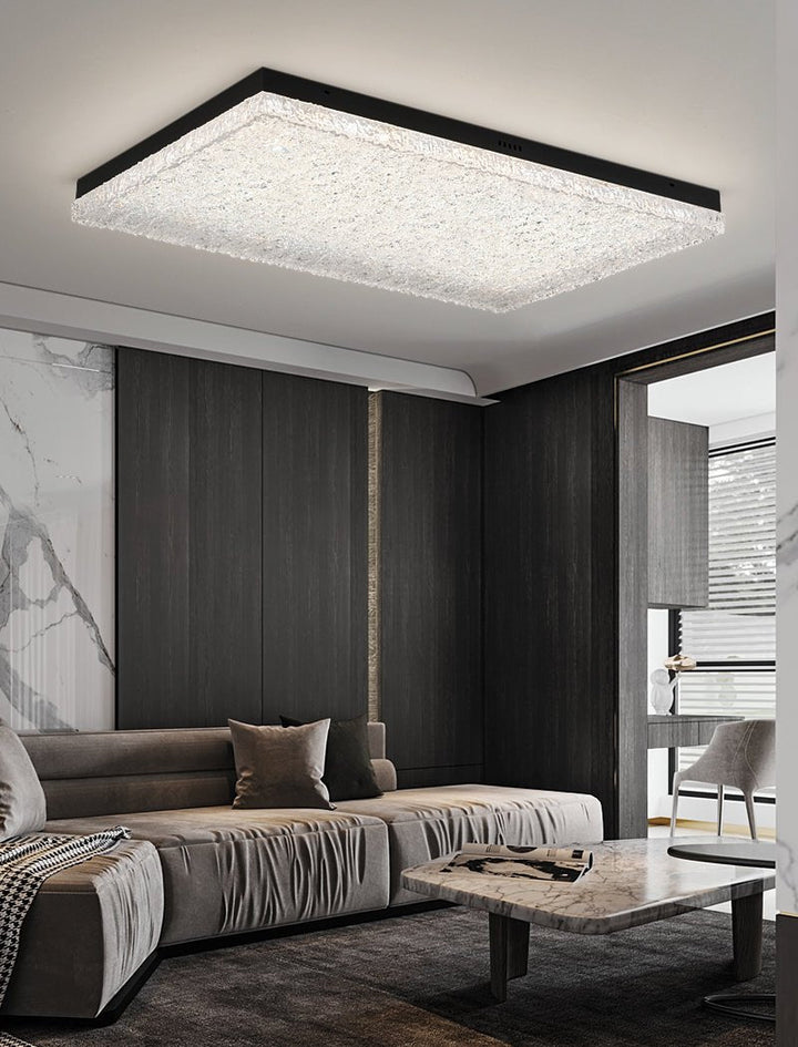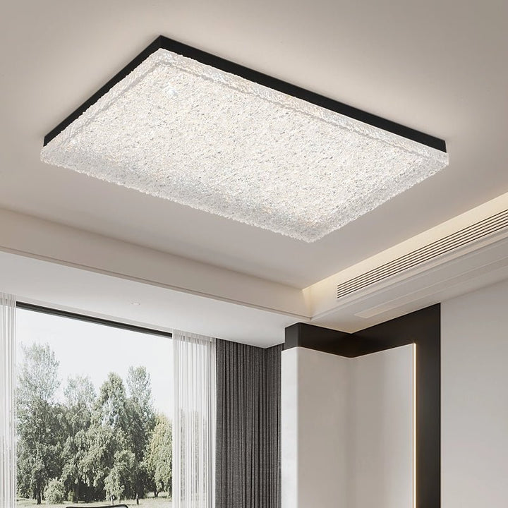 The Crystalia Resin Ceiling Light combines a sleek black iron frame with a stunning resin body that mimics the texture of crystal, offering a luxurious and modern design. Its radiant glow creates a warm and inviting atmosphere in any space.