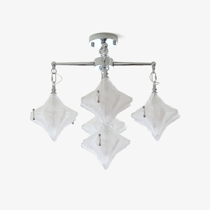Meet the Elowen Prism Chandelier from Vakkerlight — a striking blend of modern glamour and ethereal design. Featuring six suspended, diamond-like glass shades, Elowen captures and refracts light in a way that adds shimmering dimension to any space. The frosted geometric forms dangle delicately from a polished chrome frame, creating a sculptural silhouette that is both futuristic and graceful.