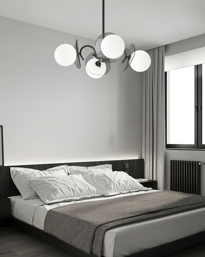 Transform any room into a modern and intriguing space with our Molecular Spherical Glass Chandelier. Featuring a sleek black frame and multiple glass spheres, it creates a visual effect akin to a solar eclipse. The interplay of light and shadow adds depth and charm, making it the perfect focal point for a living space, dining room, or entryway.