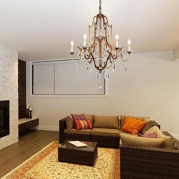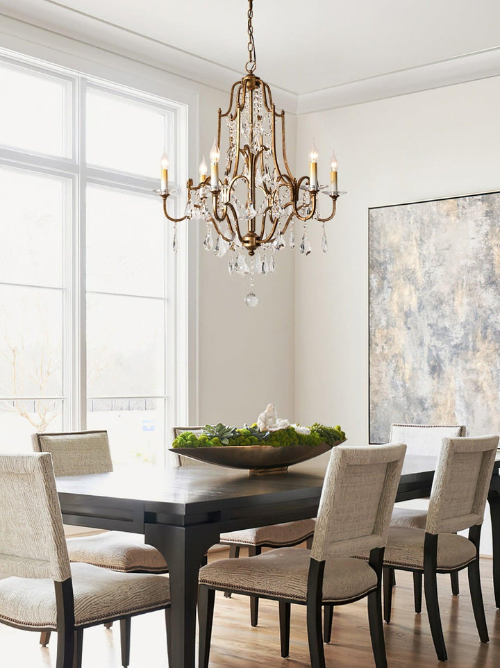 The Valentina lighting collection by Vakkerlight was named after the Latin word meaning “strong and brave,” and rightfully so. The willowy frame is finished in iron while Clear Polished glass crystals adorn each piece, adding even more elegance. Each candelabra style bulb sits in its own clear, crystal bobeche.