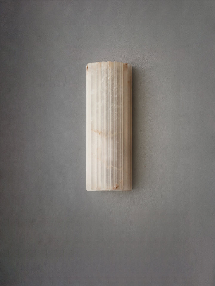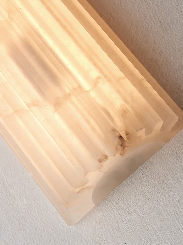 Erhellen Sie Ihre Räume mit der Alvia Alabaster-Wandleuchte, einer eleganten Leuchte aus edlem Alabasterstein. Ihr sanftes, durchscheinendes Licht schafft eine warme und einladende Atmosphäre, während das elegante, gerippte Design die natürliche Schönheit des Steins unterstreicht. Die einzigartigen Maserungen und Texturen des Alabasters machen jede Leuchte zu einem Meisterwerk und bringen einen Hauch von Naturschönheit in Ihr Zuhause.