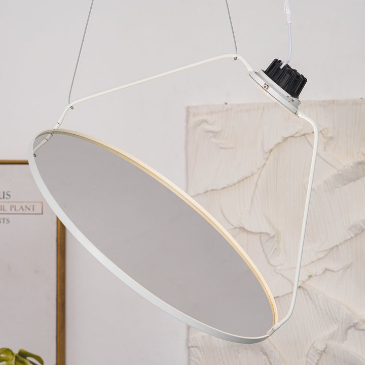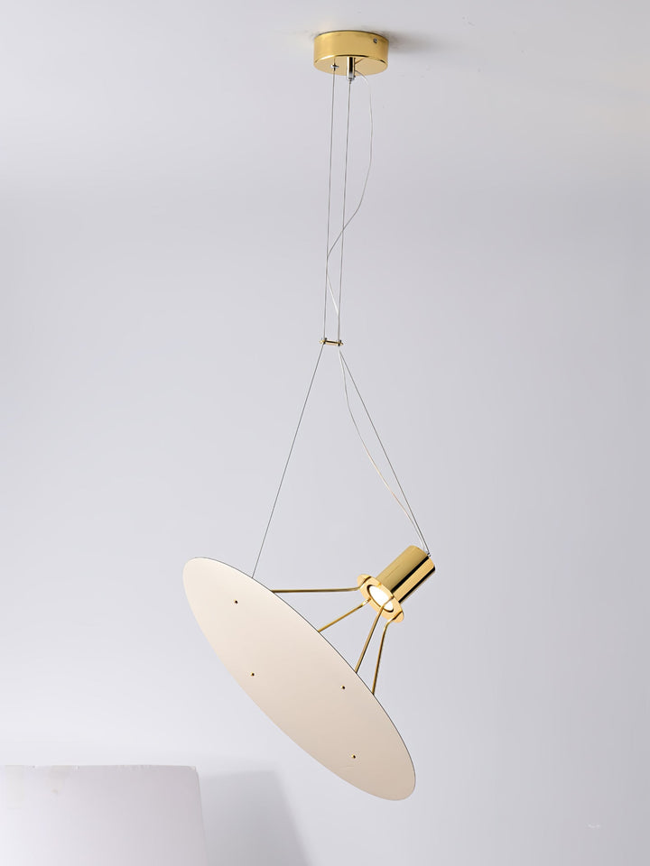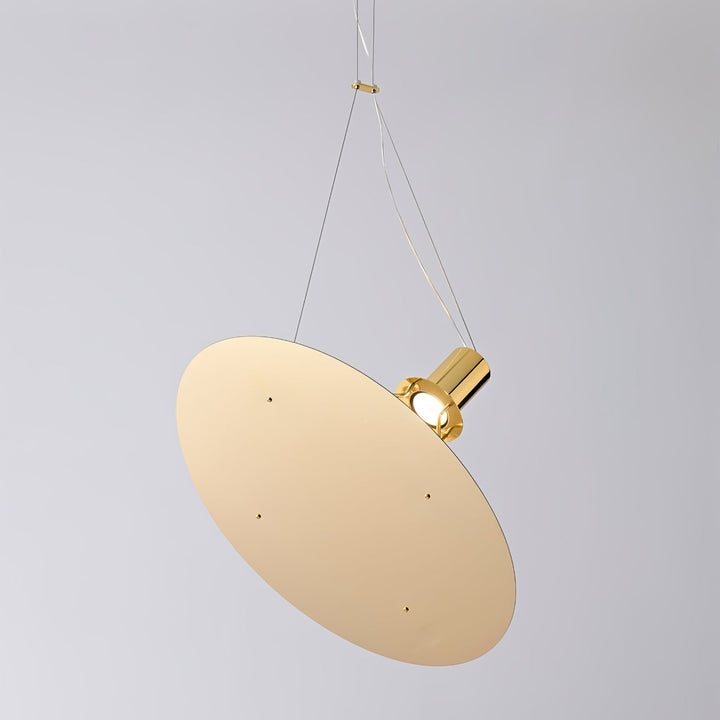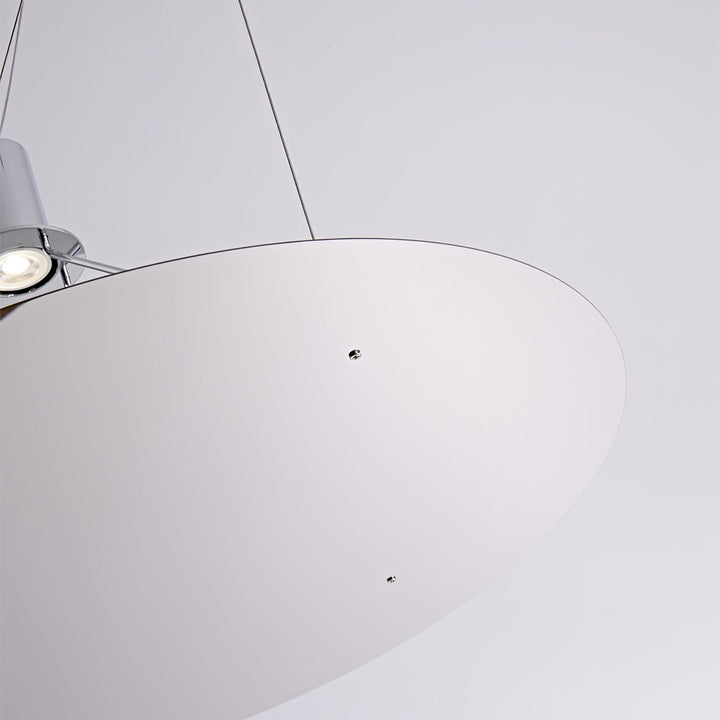 Die Amisol Pendelleuchte mit Reflektor-/Diffusorscheibe besteht aus einer Kunststofffolie in durchscheinendem Opalinweiß oder metallisiertem Spiegelsilber oder Gold, die in ein kreisförmiges Aluminiumprofil gespannt ist.