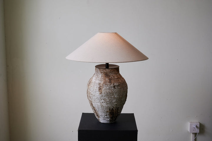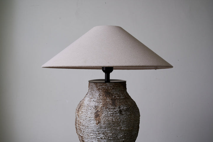Mit ihrer verwitterten Textur und erdigen Farbgebung fängt die Tischleuchte Arden die stille Schönheit antiker Keramik ein. Jeder Fuß wird aus natürlichem Ton von Hand geformt und besticht durch eine organische Oberfläche, die die Ursprünglichkeit des Materials unterstreicht. Der breite Leinenschirm erzeugt ein sanftes, stimmungsvolles Licht und verleiht modernen, rustikalen oder Wabi-Sabi-Einrichtungen Balance und Ruhe. Unvollkommen perfekt – ein Stück, das eher wie ein Fundstück als ein Designobjekt wirkt.