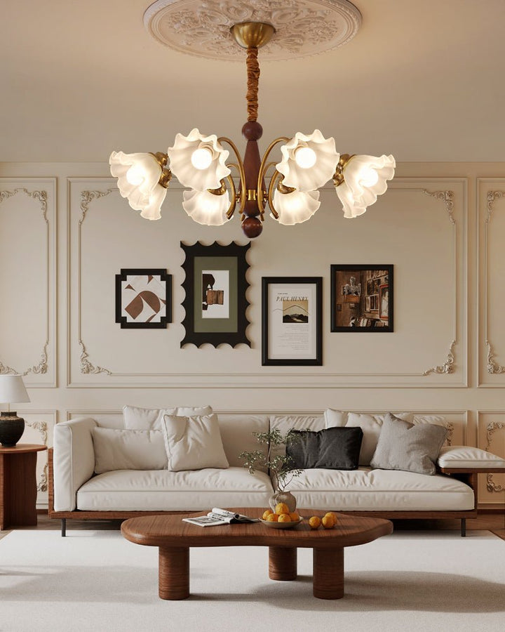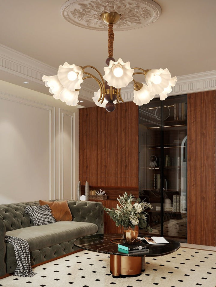 Vakkerlight's Bloomcrest Chandelier draws inspiration from delicate flower petals, featuring beautifully crafted glass shades. Its graceful design infuses natural elegance into modern and classic interiors alike.