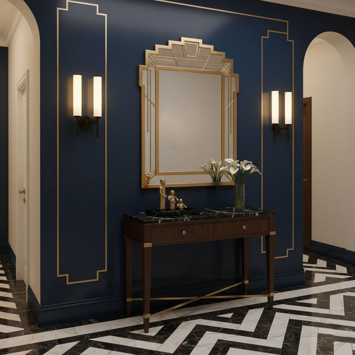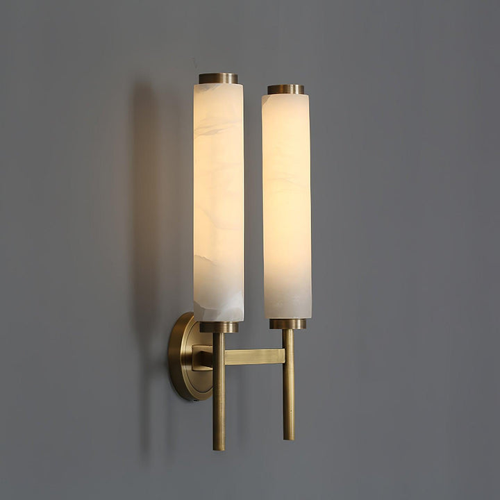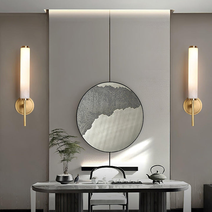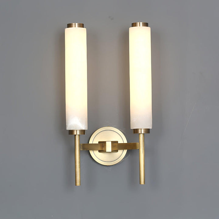 Der Arm der Brindisi-Wandleuchte aus Messing unterstreicht die Eleganz dieses Designs. Die scheibenförmige Halterung auf dem röhrenförmigen Gestell trägt den hohen, schlanken Lampenschirm aus blickdichtem Glas. Die schlichte, goldfarbene Wandleuchte mit ihrem sanft leuchtenden, weißen Schirm ist aus Metall gefertigt und in Antikmessing-Optik gehalten.