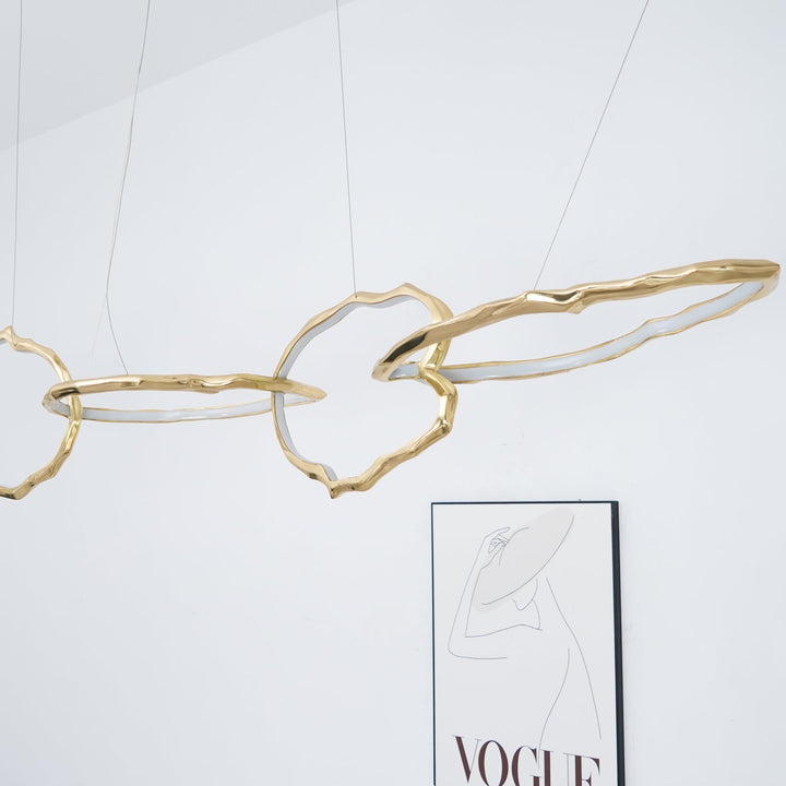 Experience the Cloud Rings Series Brass Chandelier, crafted by an expert artisan combining traditional carving techniques with modern material-oriented design methods. Every circular shape is hand-etched without damaging the original, creating a unique and radiant sculpture for your home or business.