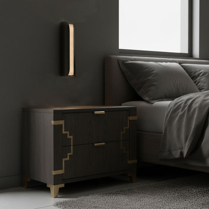 Entdecken Sie die Vakkerlight Wandleuchte „Cradled Alabaster“, eine luxuriöse Leuchte, die robuste Metallkunst mit der Anmut von Naturstein vereint. Diese markante Wandleuchte besticht durch eine leuchtende Alabasterplatte, die für ihre einzigartige, warme Maserung und außergewöhnliche Lichtstreuung bekannt ist und ein sanftes, stimmungsvolles Licht erzeugt. Der Alabaster wird elegant von zwei massiven, geschwungenen Paneelen in Antikgold eingefasst, die das Licht sanft umschließen und lenken. Perfekt, um Fluren, Akzentwänden oder luxuriösen Wohnräumen eine anspruchsvolle, architektonische Note und eine reiche Textur zu verleihen.