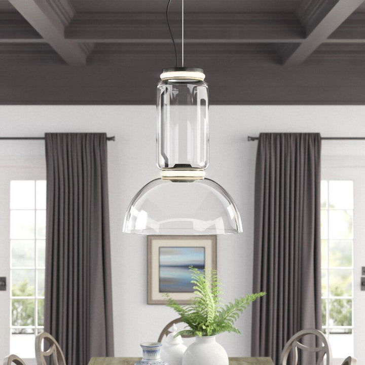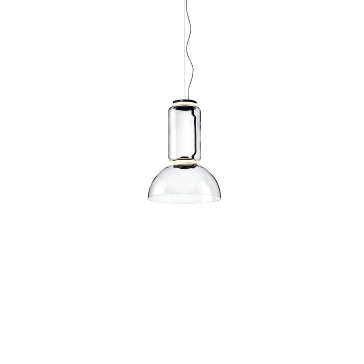Die Pendelleuchte Noctambule ist in verschiedenen einzigartigen Designvarianten erhältlich. Sie verfügt über einen zylindrischen Korpus (in niedriger oder hoher Ausführung), der mit einem kuppel- oder kegelförmigen Leuchtenkopf kombiniert werden kann, falls eine direktere Lichtquelle gewünscht ist. Die Dimmfunktion lässt sich über die Deckenrosette am Netzteil oder über das Fußpedal am Stromkabel steuern.