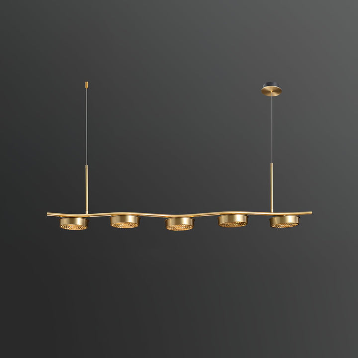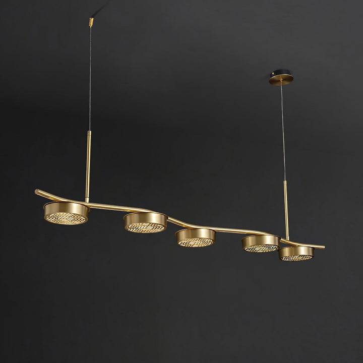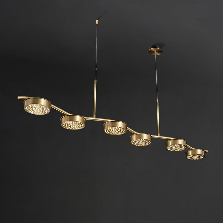 The Eichholtz Aldo Chandelier offers sleek contemporary styling and excellent lighting. This mid-century modern style 6 light ceiling pendant is sure to take center stage with its series of rings in an aged brass finish.