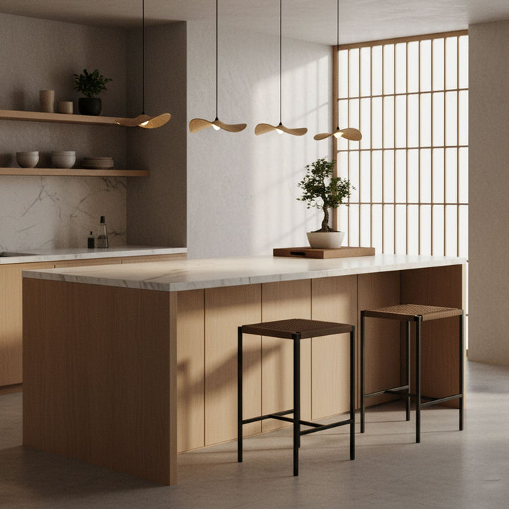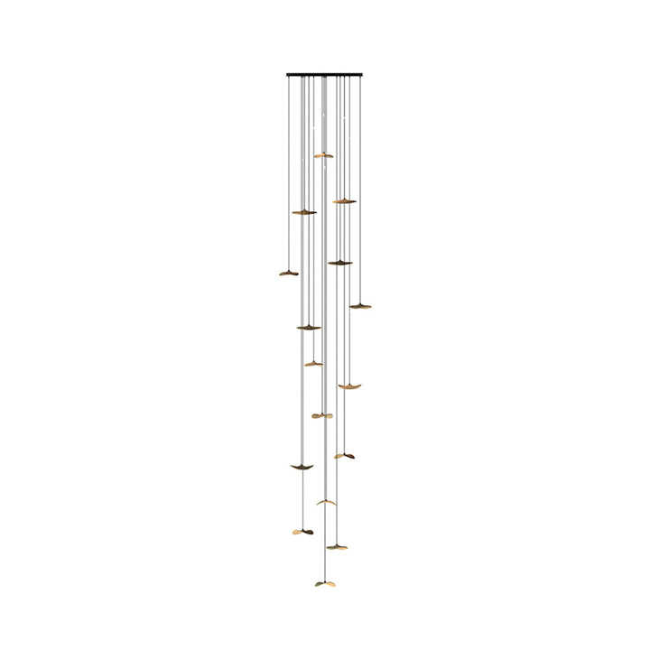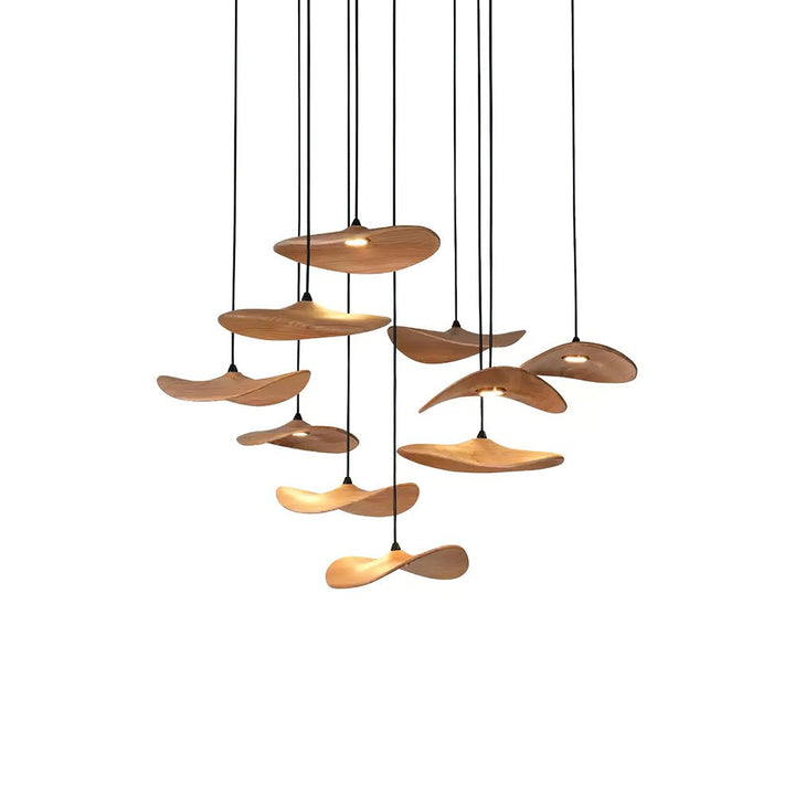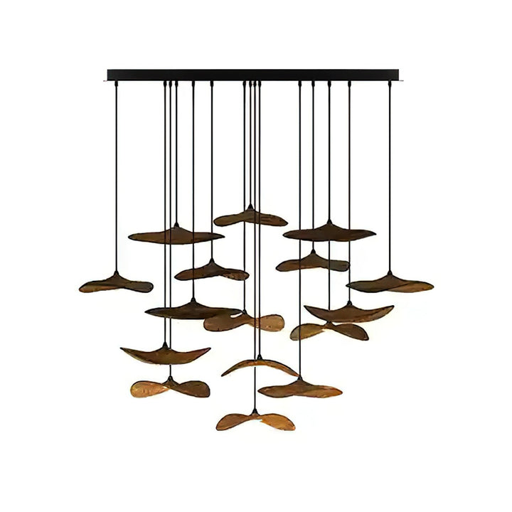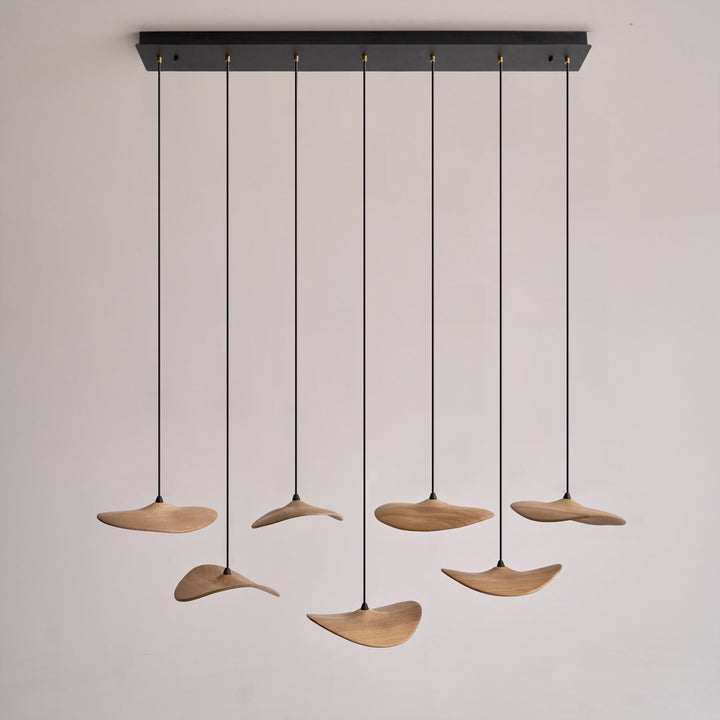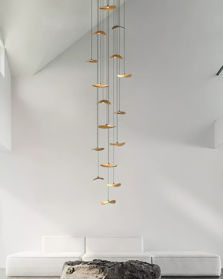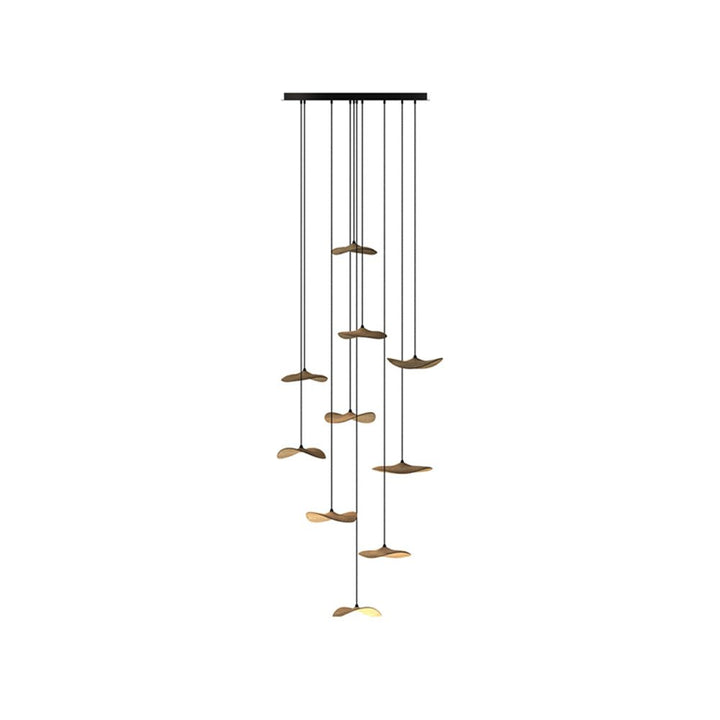 Verwandeln Sie Ihre Räume mit dem Kronleuchter „Leeres Blatt“. Seine zarten, in sanften Holztönen gehaltenen Blätter verleihen jedem Zimmer Wärme und Eleganz. Dank seiner schlichten Struktur und der einzeln aufgehängten Blätter erzeugt dieser Kronleuchter eine dynamische und skulpturale Wirkung und ist somit die perfekte Wahl für Esszimmer, Wohnzimmer oder Eingangsbereich. Meisterhaft gefertigt für ein leichtes und luftiges Ambiente.