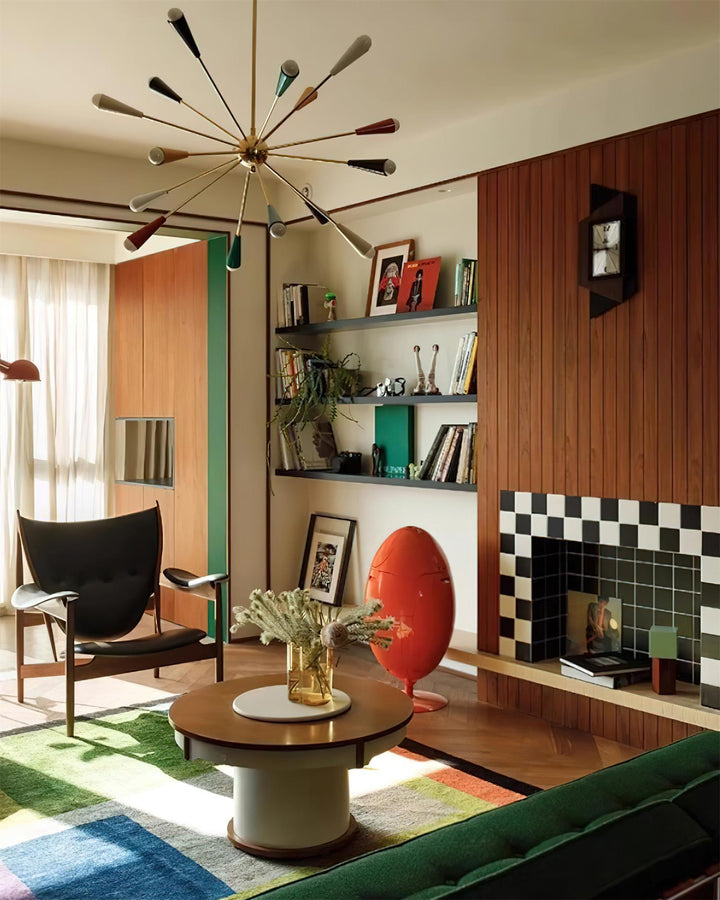 Verwandeln Sie jede Nacht in ein Fest mit dem Kronleuchter Firework Pop – einem vom Mid-Century-Stil inspirierten Meisterwerk, das mit kräftigen Farben und dynamischer Energie besticht. Seine sternförmige Gestalt und die farbenfroh bemalten Arme strahlen aus jedem Blickwinkel Farbe und Charme aus.