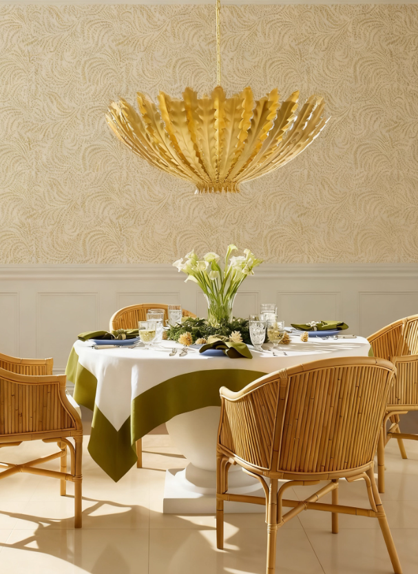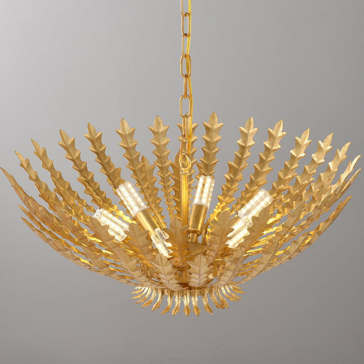 The Vakkerlight Gilded Acanthus Chandelier is a breathtaking statement piece, embodying opulence and organic form. This large fixture takes a bowl-like structure crafted entirely from hand-finished gilded metal leaves (Acanthus or Palm-inspired).