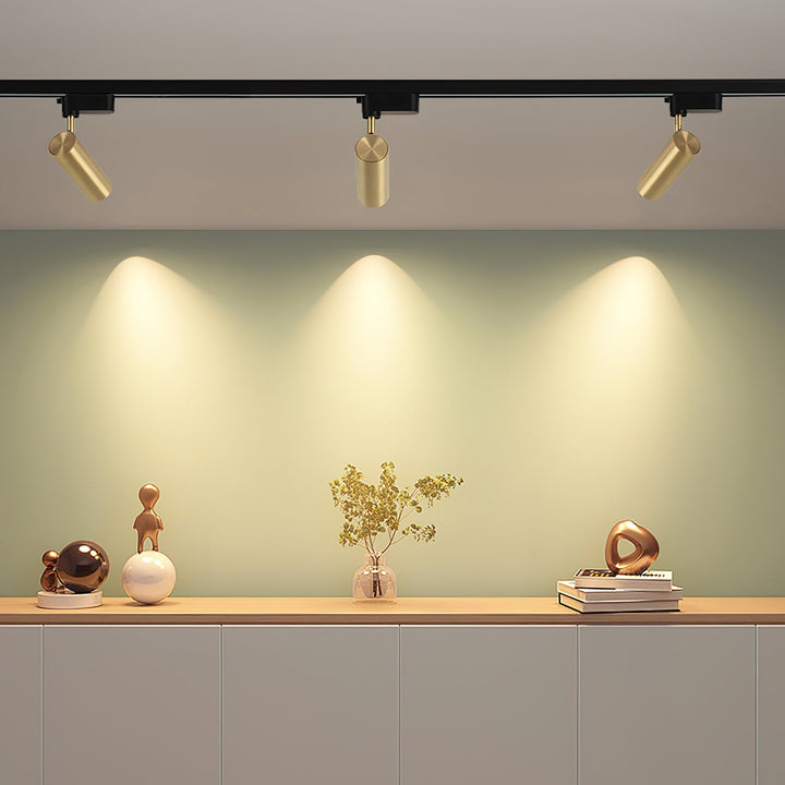 Die Leuchte „Gilded Rail Track Light“ vereint Eleganz und Funktionalität. Die schlanke, anthrazitfarbene Schiene bildet einen raffinierten Kontrast zu den goldenen, zylindrischen Leuchten und erinnert an luxuriöse, golden beleuchtete Eisenbahnwaggons, die durch die Nacht gleiten. Diese Kombination aus Materialien und Farben unterstreicht nicht nur die Ästhetik, sondern bietet auch eine vielseitige Beleuchtungslösung, die sich an verschiedene Einrichtungsstile anpasst – von modern-industriell bis hin zu zeitgenössisch-schick. Das Design vereint Minimalismus und Opulenz und macht die Leuchte zu einem herausragenden Blickfang in jedem Raum.