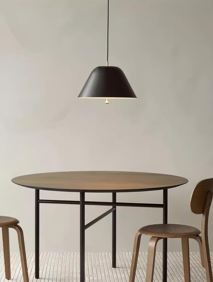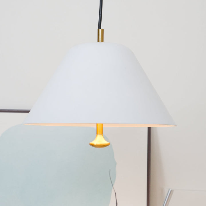 Die minimalistische Pendelleuchte ist eine elegante, schwebende Leuchte mit einem großzügigen Schirm und einem Glasdiffusor, der warmes, stimmungsvolles Licht verbreitet. Die Messingknöpfe verleihen dem klassischen Design eine besondere Note. Die Leuchte ist in zwei Größen und drei Farben erhältlich und eignet sich perfekt für eine geschmackvolle Beleuchtung in jedem Raum.
