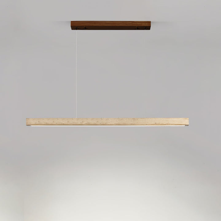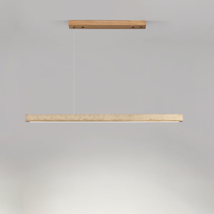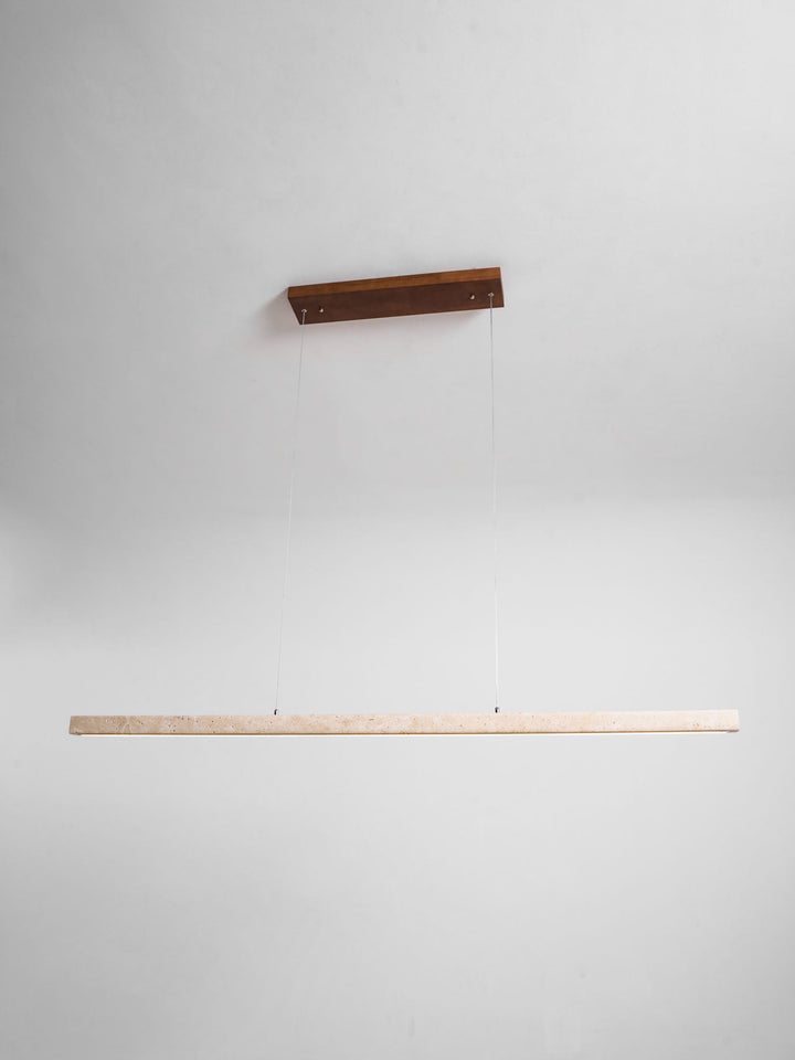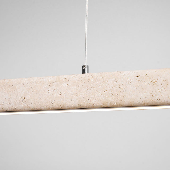 Die elegante und minimalistische Pendelleuchte Linear Travertine von Vakkerlight besticht durch einen raffinierten Travertinstab, der an dezenten Drähten hängt. Sie eignet sich ideal für moderne Kücheninseln oder Arbeitsbereiche und verleiht jedem Raum eine unaufdringliche Eleganz.