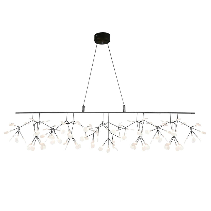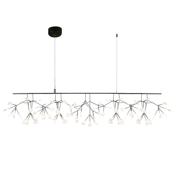 The Long Style  Firefly LED Chandelier features small acrylic that comes together to create a flower-like shape, emitting a bright, firefly-like ambiance to your living space. Experience the beauty of an illuminated flower in any room.