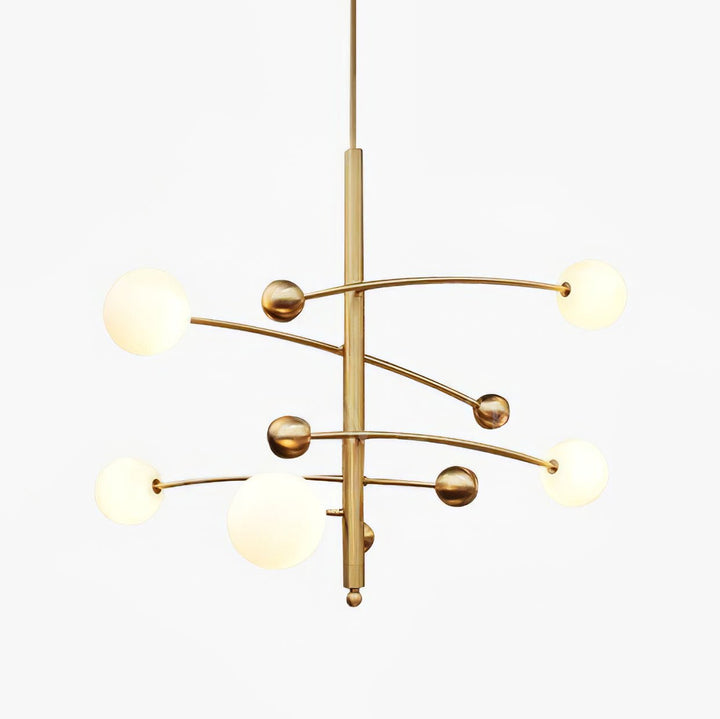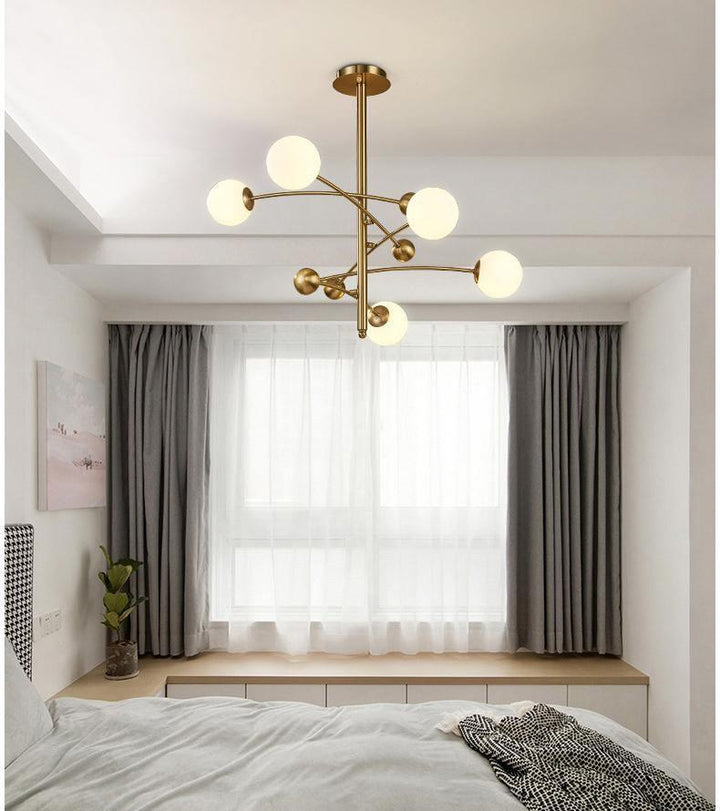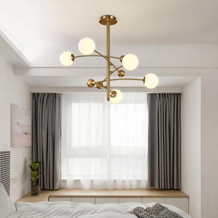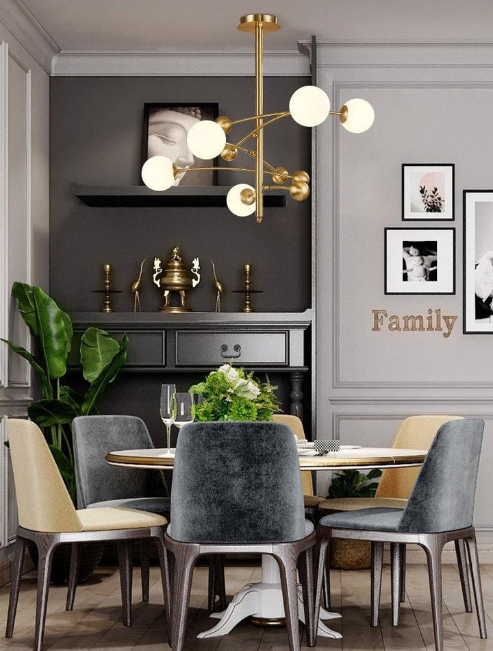 Der Kronleuchter ist ein elegantes Ensemble aus mattierten Glasbirnen, die an einem massiven Metallring befestigt sind. Seine Designelemente sind klar strukturiert. Der leichte Kronleuchter ist ein hervorragendes Beispiel für minimalistisches Design und besticht durch seine visuelle Wirkung.