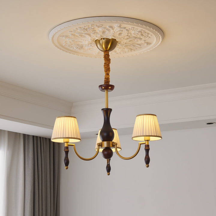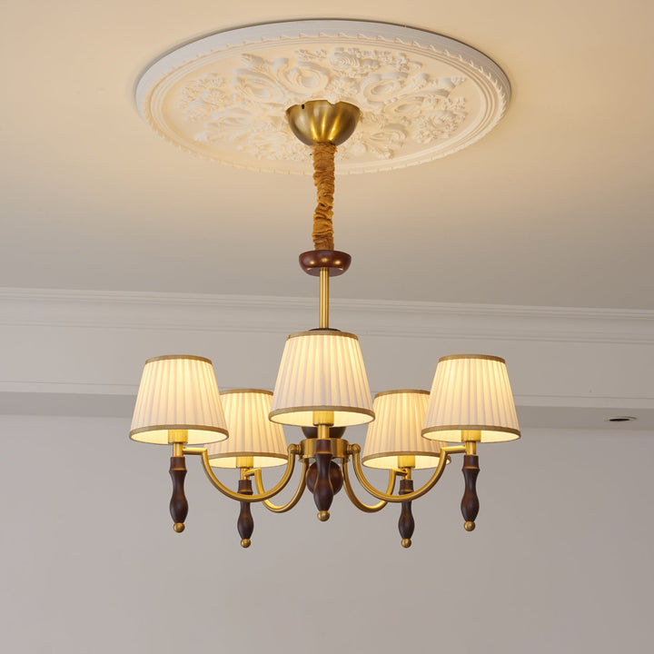 Mit zarten, geätzten Blumenmotiven und edlen Walnussholz-Akzenten verkörpert der Kronleuchter Heritage Bloom von Vakkerlight einen Hauch von Vintage-Charme. Sein anmutiges Design verleiht Ihrem Zuhause ein romantisches Ambiente.