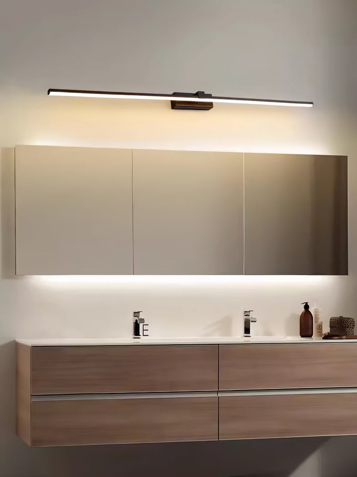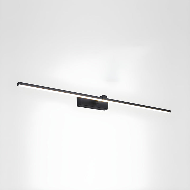 Diese lineare Spiegelwandleuchte aus Metall verleiht jedem Raum mit ihrem eleganten, geradlinigen Design eine moderne Note. Genießen Sie die Vorteile einer stilvollen und funktionalen Spiegelwandleuchte mit einer Leuchte und schwarzer Oberfläche. Werten Sie Ihr Zuhause mit dieser eleganten und zeitgemäßen Beleuchtungslösung auf.