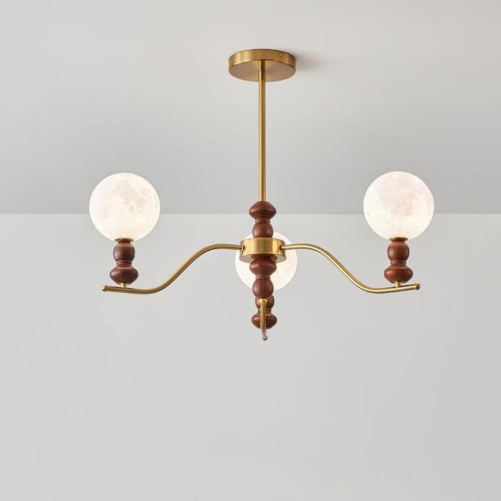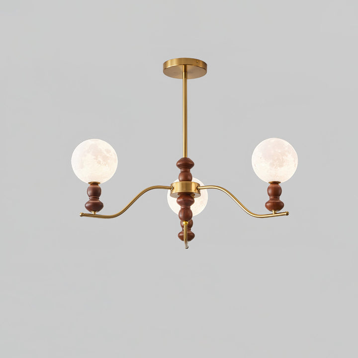 Experience the tranquility and mystery of a moonlit night with our Moonlit Globe Chandelier. Crafted with a delicate glass sphere resembling a shining moon, this fixture combines rich wooden elements and gilded metal arms for an elegant and natural feel. Transform any room into a serene and luxurious space with this perfectly balanced combination of nature and refinement.