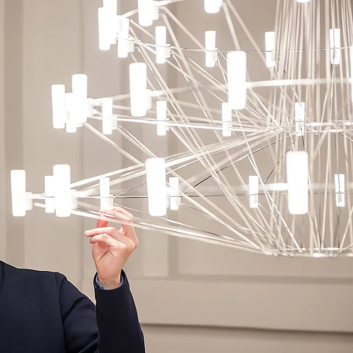The Sky Ballet Chandelier is a beautiful lighting fixture crafted from stainless steel and acrylic. Its classic design adds a touch of elegance to any space, while its airy structure still allows ample light to flow for luminous ambience. Enjoy a unique statement piece in any room.