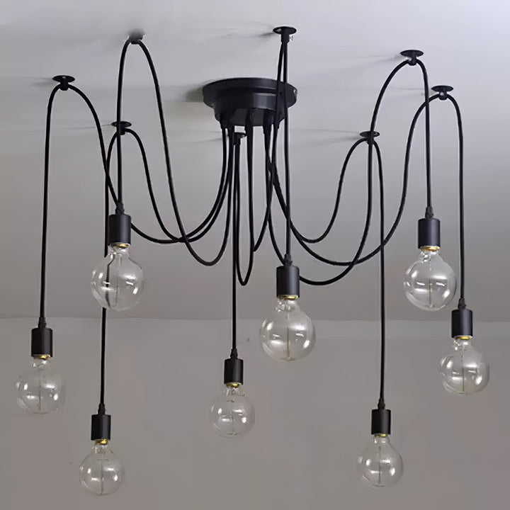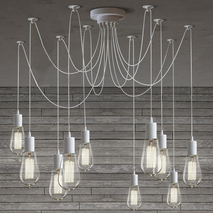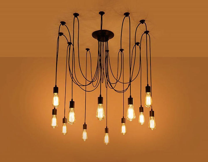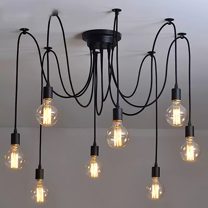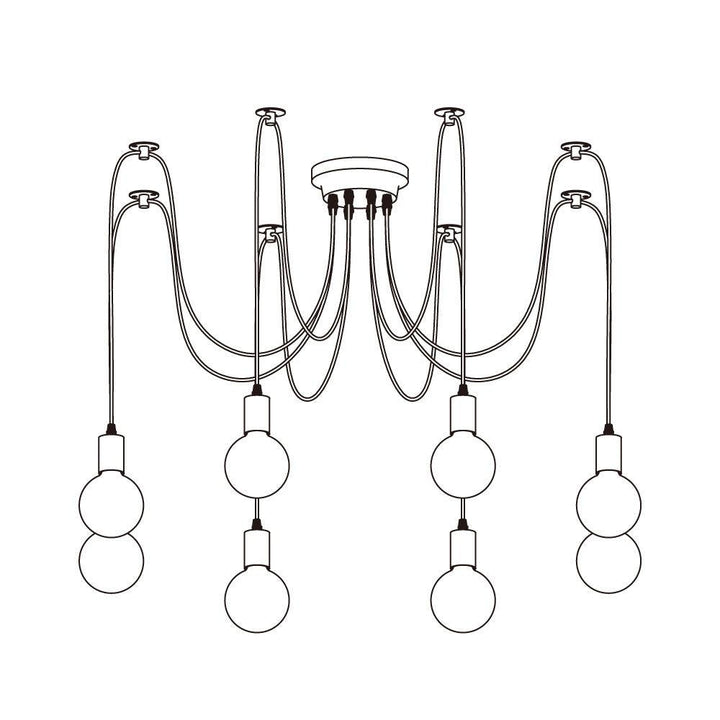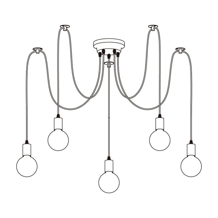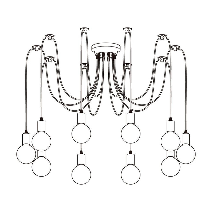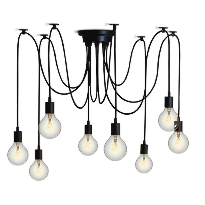 Decorate your room and show your modern and industrial atmosphere with this spider adjustable chandelier pendant lights. The use of different types and finishes of the bulb can dramatically alter the mood and atmosphere providing bright light in working areas and soft tones in areas of relaxation. Each wire is 79 inches, can adjusted droop length and modeling by DIY.