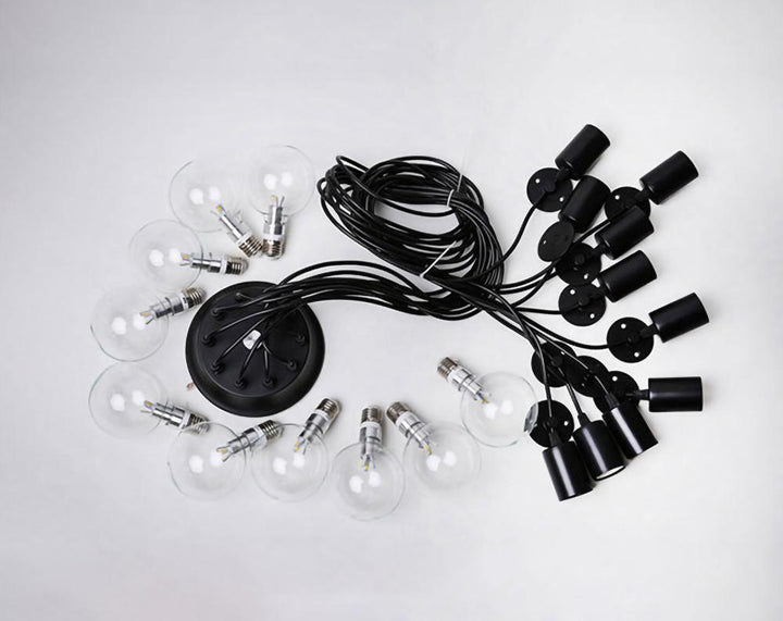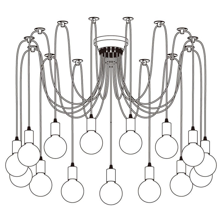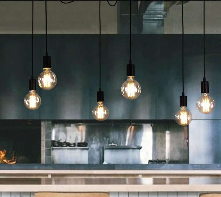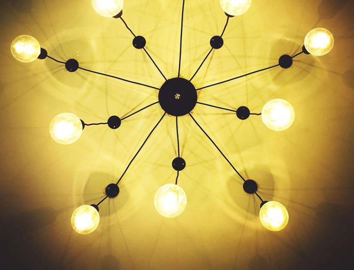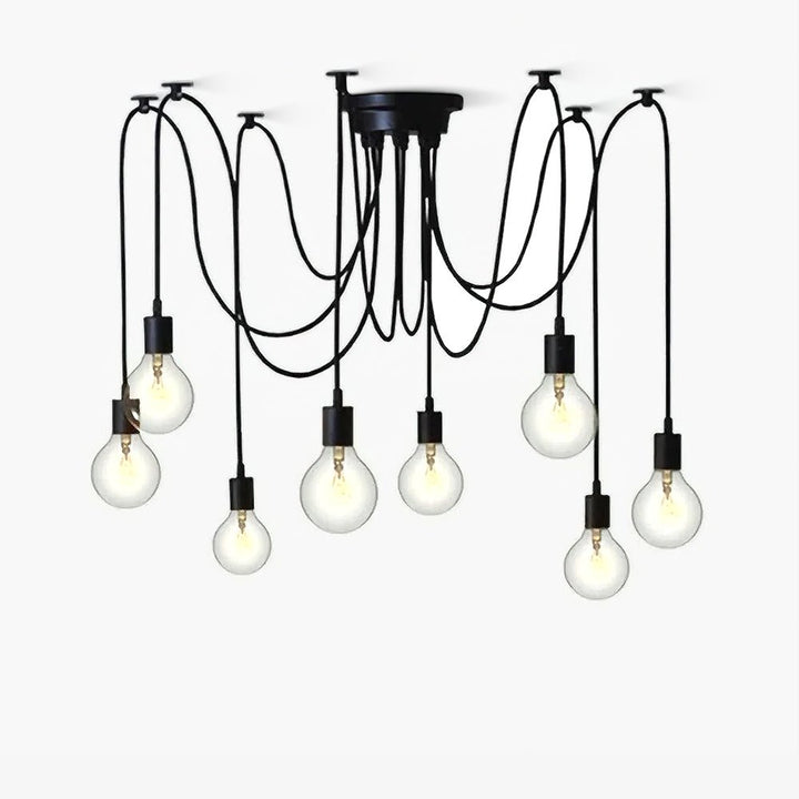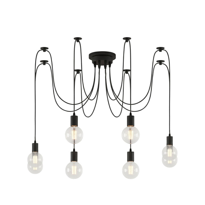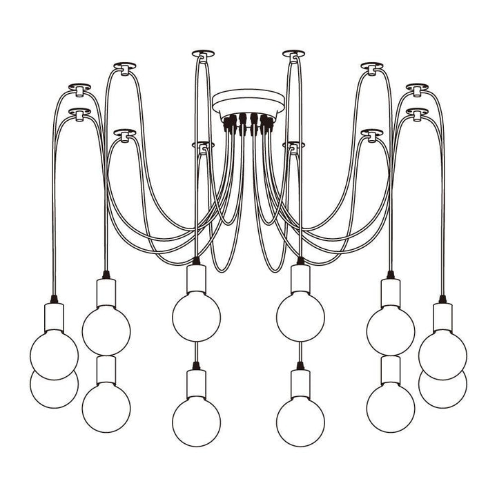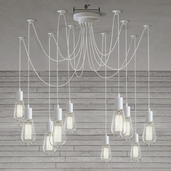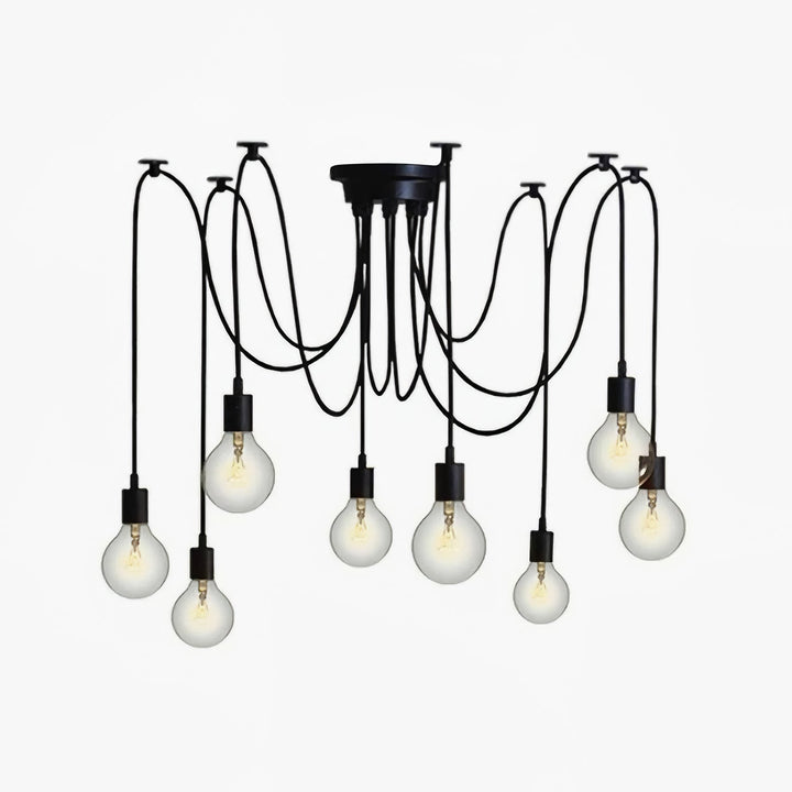 Decorate your room and show your modern and industrial atmosphere with this spider adjustable chandelier pendant lights. The use of different types and finishes of the bulb can dramatically alter the mood and atmosphere providing bright light in working areas and soft tones in areas of relaxation. Each wire is 79 inches, can adjusted droop length and modeling by DIY.