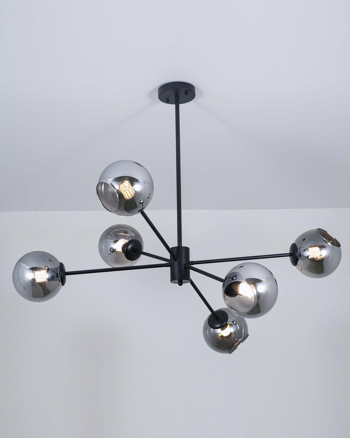 Mit diesem gestaffelten 6-flammigen Kronleuchter aus Glas ernten Sie Komplimente und regen zu Gesprächen am Esstisch an. Seine glänzenden Glaskugeln werden bei Ihrem nächsten Treffen garantiert für bewundernde Blicke sorgen.