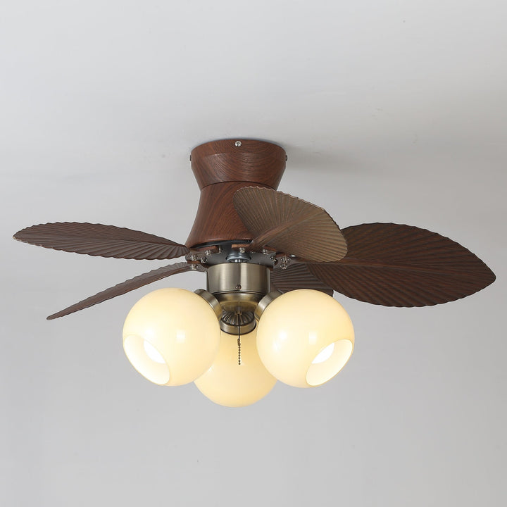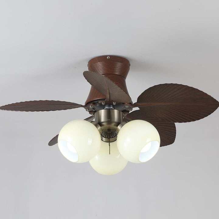 Die Vakkerlight Tropi Glow Deckenventilatorleuchte fängt mit ihrem botanisch anmutenden Flügeldesign und der strahlenden Kugelbeleuchtung die Essenz einer üppigen Oase ein. Die ABS-Ventilatorflügel, geformt wie übergroße tropische Blätter, verleihen dem Raum natürliche Struktur und Dynamik, während die drei opalfarbenen Glaskugeln ein warmes, retro-inspiriertes Licht erzeugen. Das holzfarbene Motorgehäuse unterstreicht den organischen Charakter und macht die Leuchte perfekt für naturnahe Interieurs, Wintergärten oder eklektische tropische Einrichtungen. Die TropiGlow vereint funktionale Luftzirkulation mit stimmungsvollem Licht und spiegelt so Vakkerlights charakteristische Harmonie aus Natur, Nostalgie und Innovation wider.