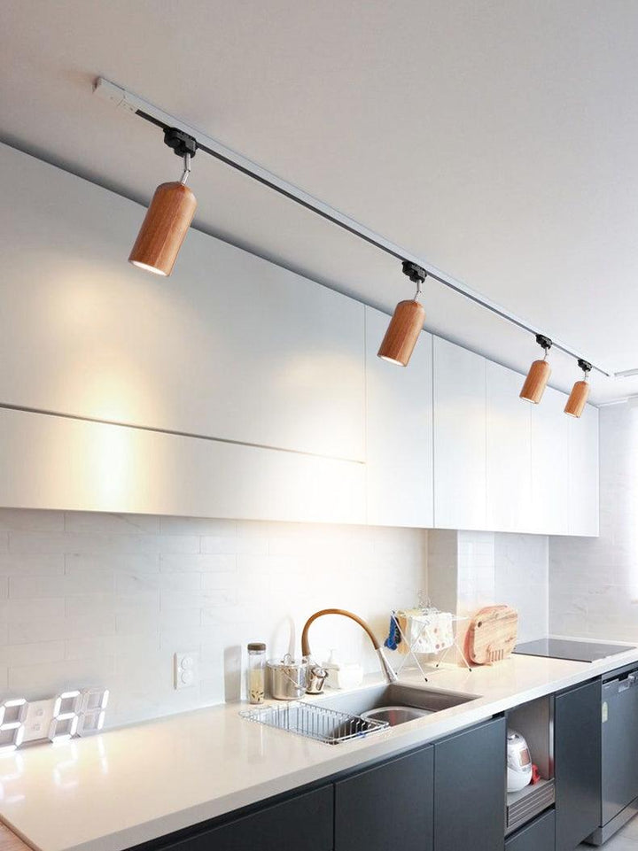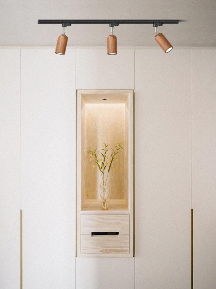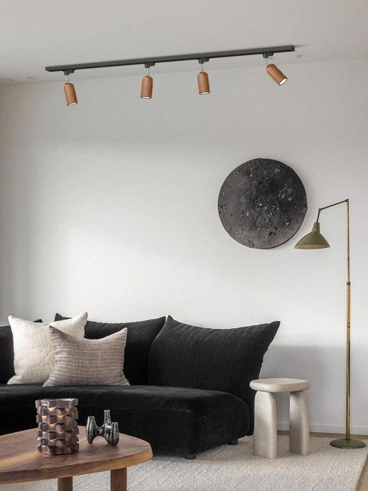 This modern industrial steel track fixture features adjustable light heads that offer you maximum flexibility. The wood canopy adds quaint and original touch to this refined and sophisticated lighting. The ceiling lamp could be converted to a wall-mount lamp. This functional artwork can definitely  be the statement piece of your room.