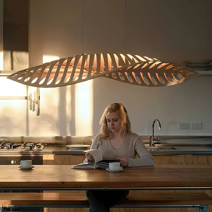 Die Pendelleuchte Zephyr von Vakkerlight besticht durch ihr organisches Design, das von fließenden Blättern inspiriert ist. Gefertigt aus Naturholz, schafft ihre filigrane Struktur eine warme, luftige Atmosphäre und macht sie zu einem echten Blickfang in modernen Räumen.