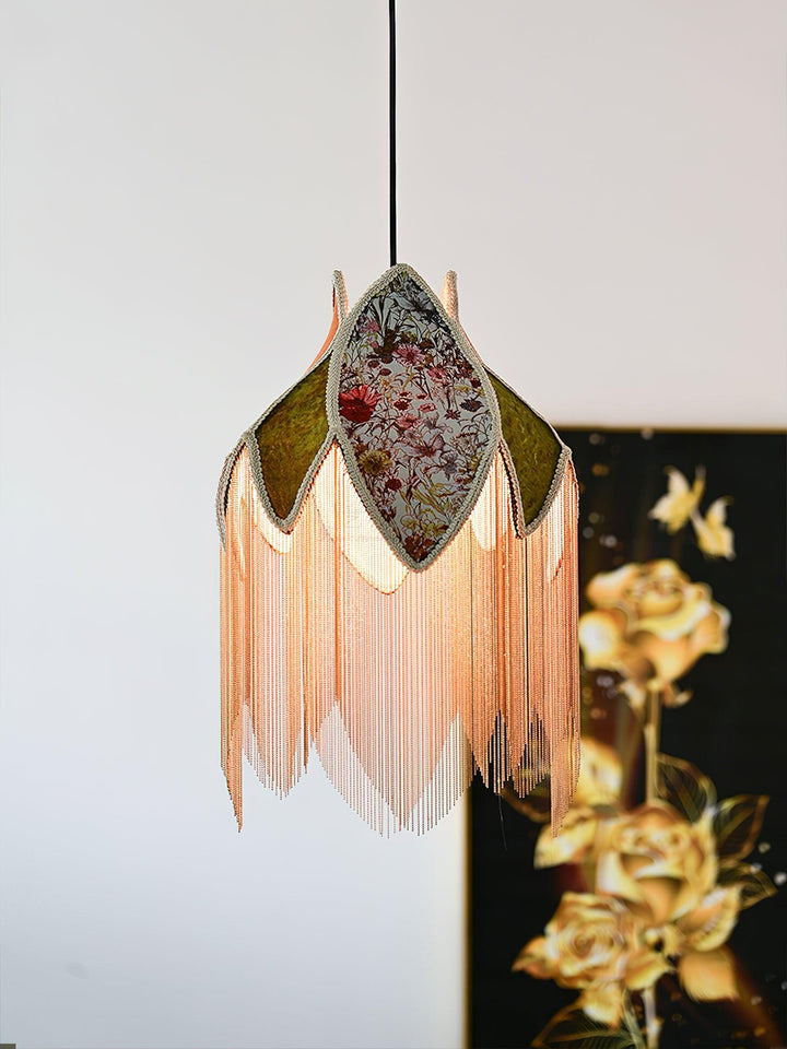 Perfect curves and voluptuous fringes, meticulously upholstered in our sumptuous velvet, feature a delicate floral pattern, with flowers sinuously and mysteriously intertwining to create a charming interior ambience.