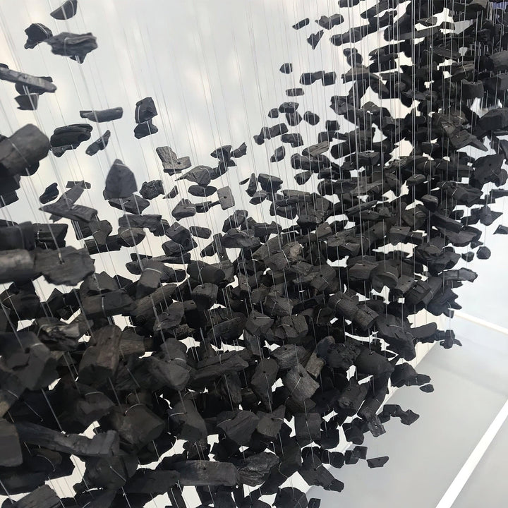 What begins with a single lump of charcoal extends into a line and then expands to fill a space. The design artist uses charcoal, with its dualistic connotations of creation and destruction, to suggest that everything in the world is connected and that the entire universe is contained within a single point. The implications are simple and clear.