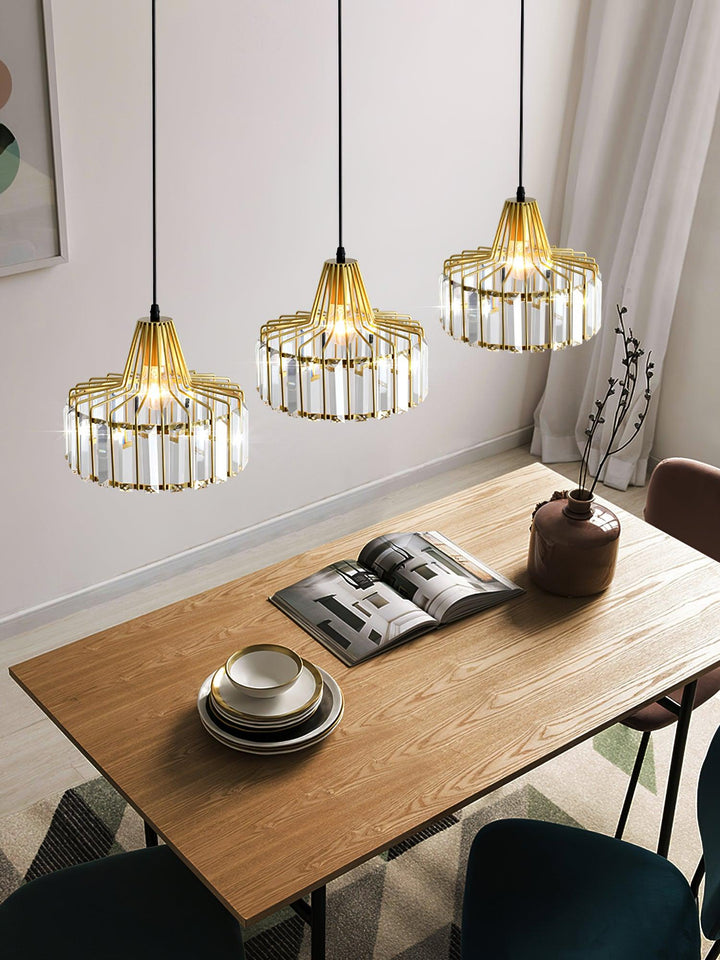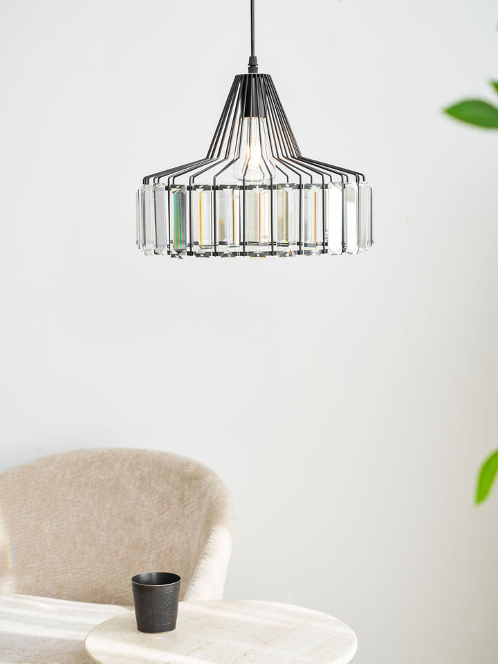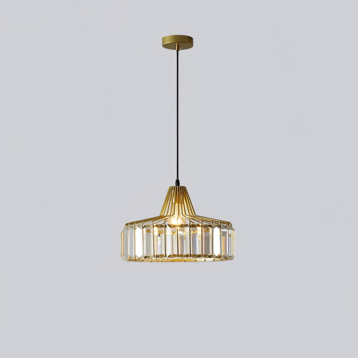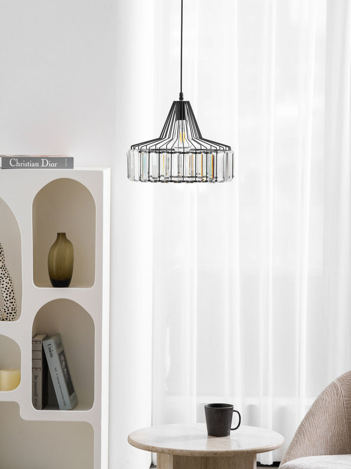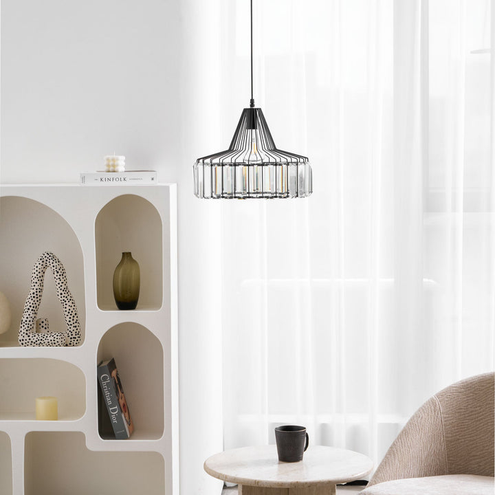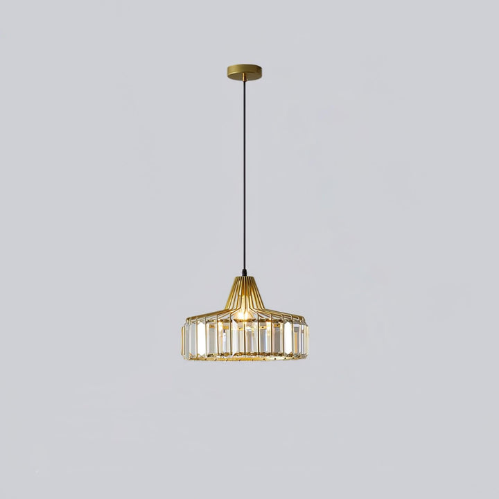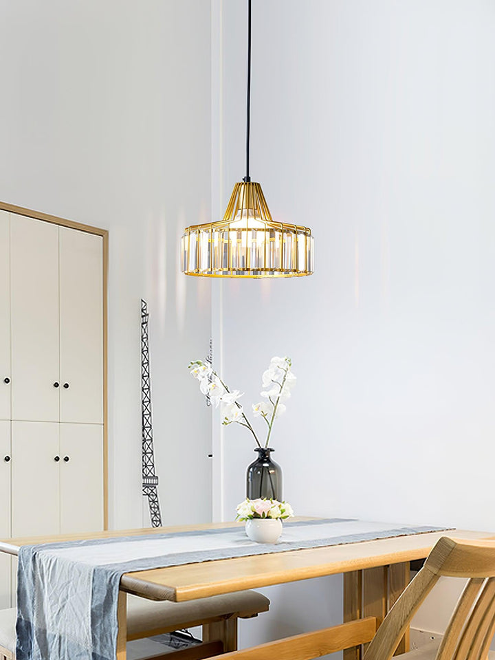 This Crystal Drum Pendant Lamp features a beautifully crafted crystal glass lampshade with gold or black finishes. Its sophisticated design will give your space an elegant, modern look that will last for years.