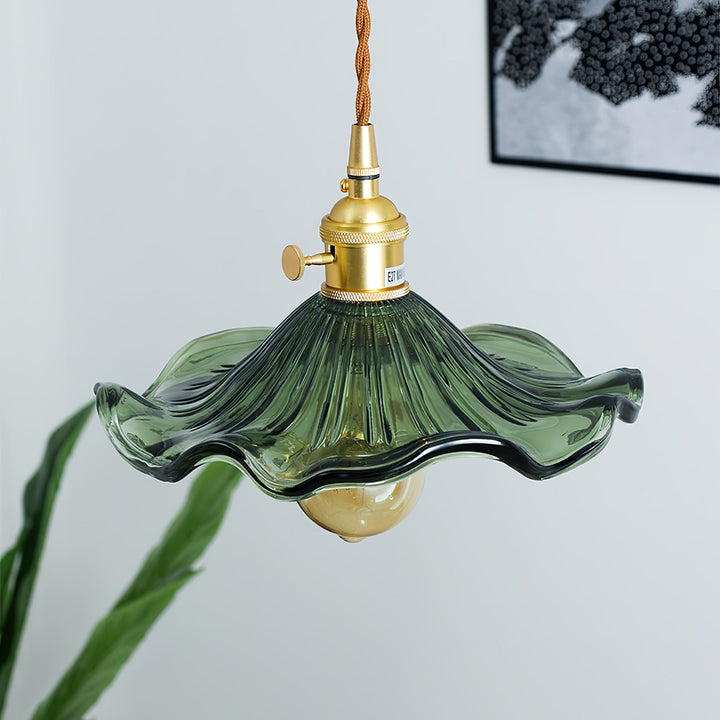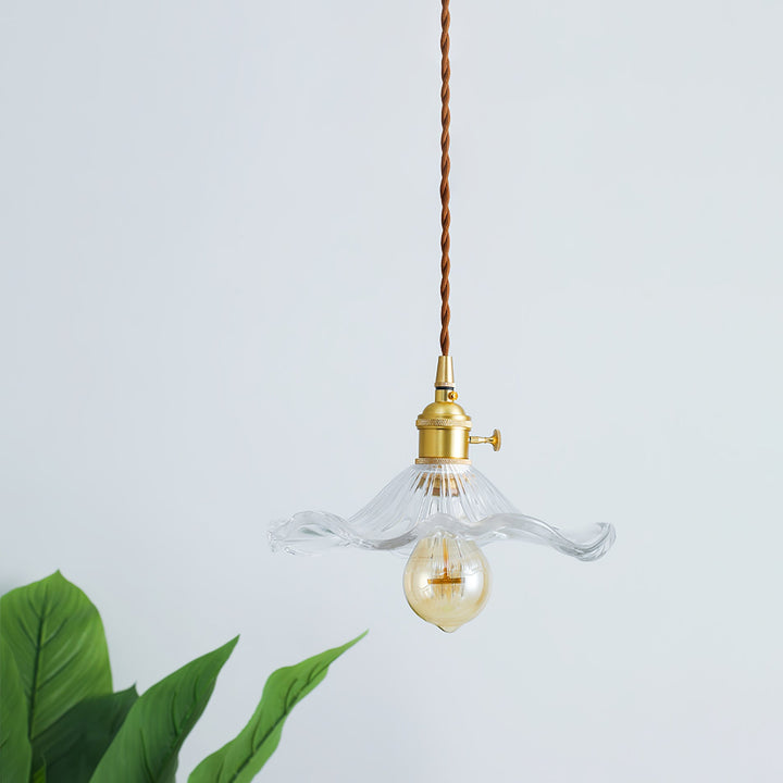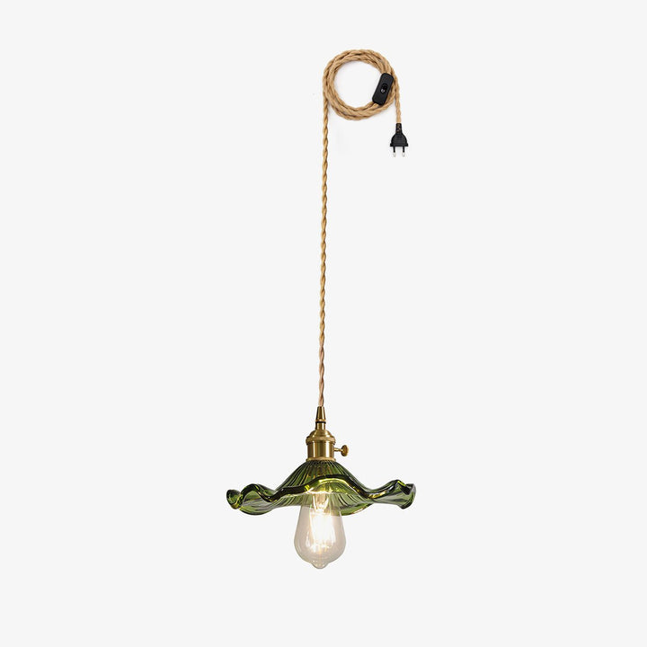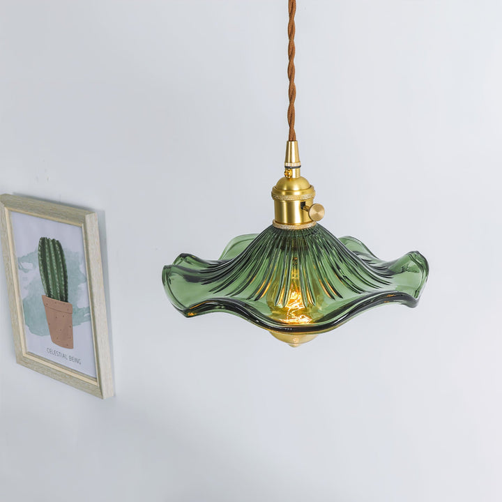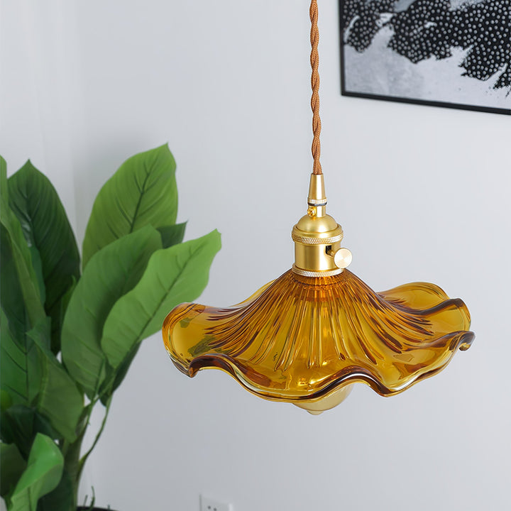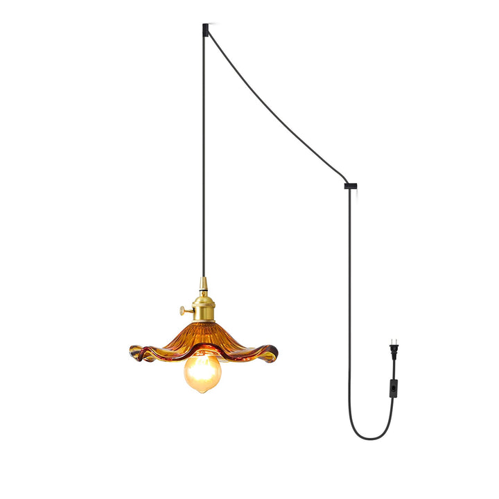 Introduce a touch of Art Nouveau charm to your space with our Glass Hibiscus Flower Swag Light. Modeled after lights from this iconic era, it features a beautifully crafted fluted glass lampshade and a brushed brass lamp holder. Let the subtle and elegant light from this flower-shaped shade transport you to a bygone era.