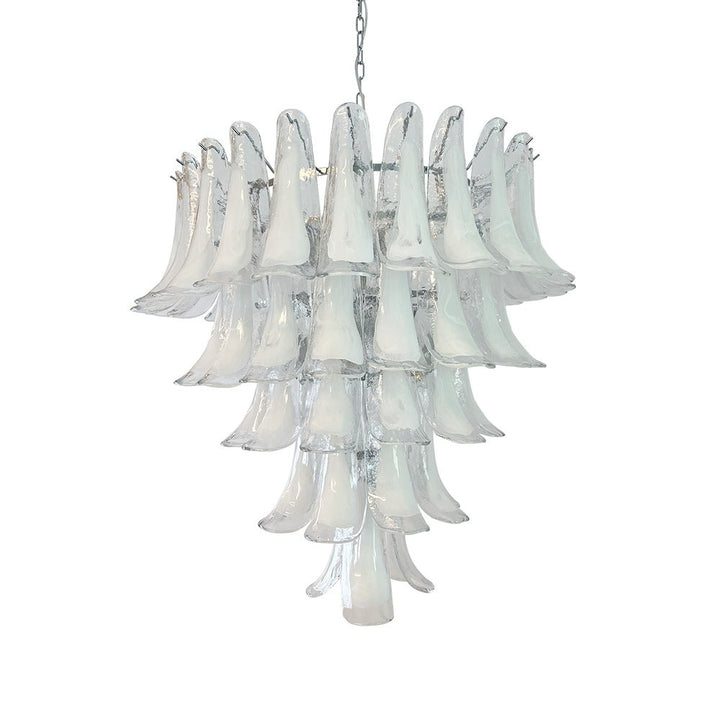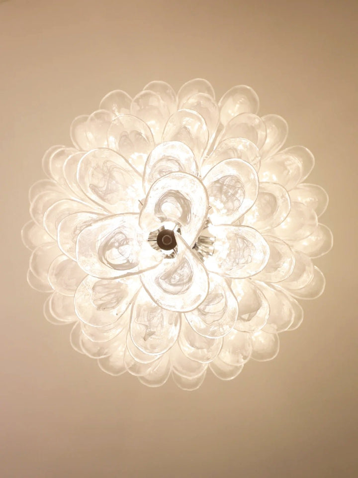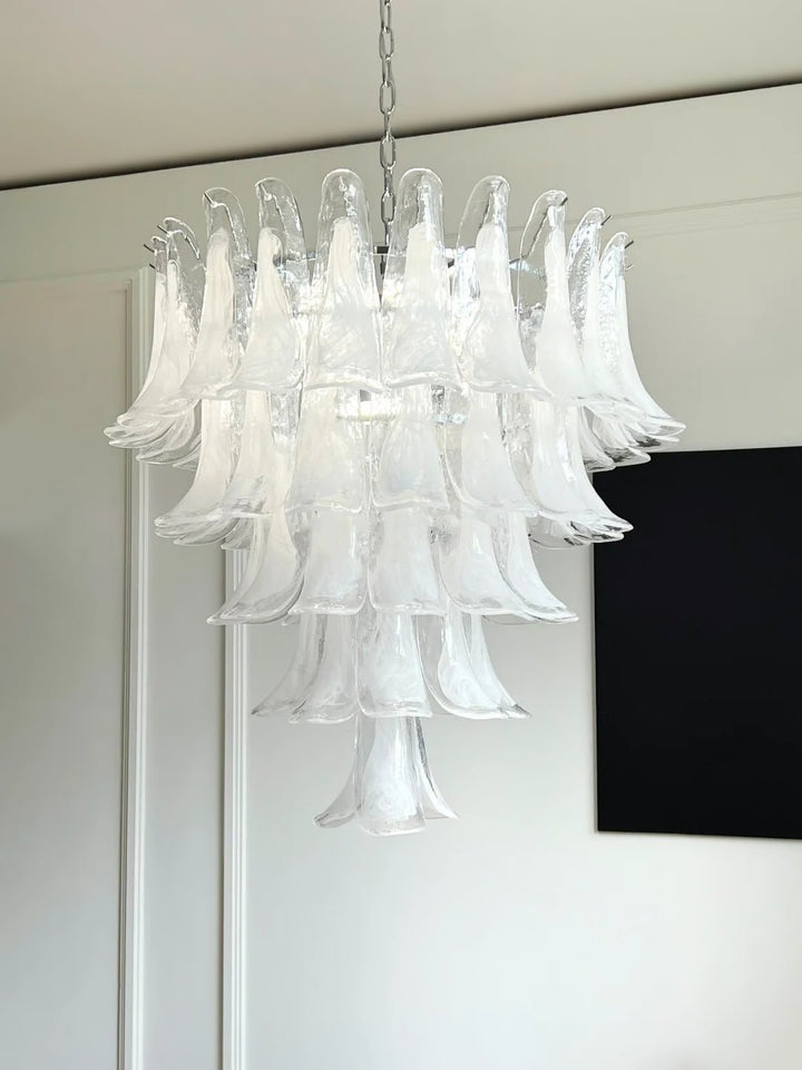 Create an ambiance of elegance and luxury with our Vintage Murano Glass Petals Chandelier. Handcrafted with delicate transparent petals, it illuminates your space with a warm glow, adding a touch of sophistication. Perfect for any room, it invites you to bask in its decadent beauty.