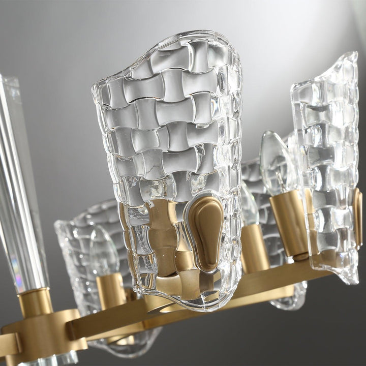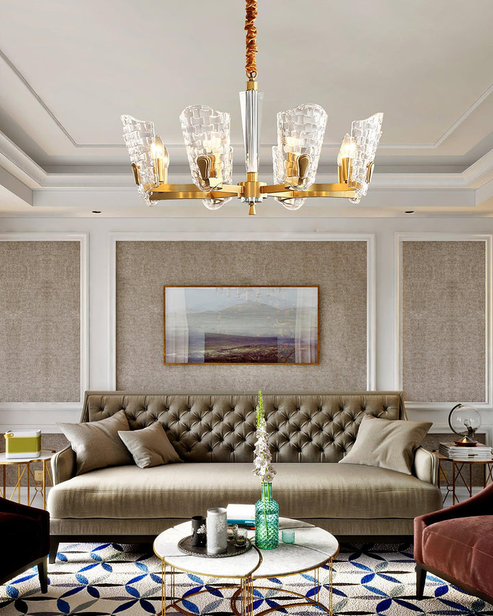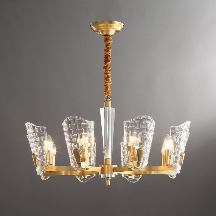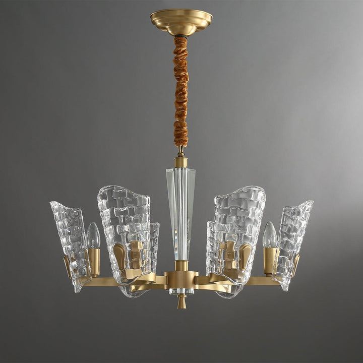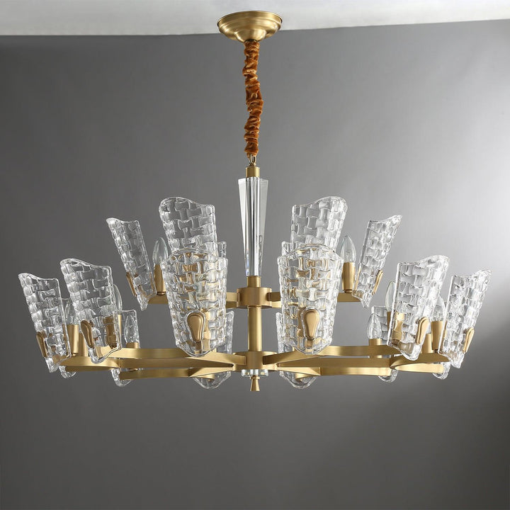 Influenced by the restrained glamour of Gatsby-era American interiors, Renato will make an impact in any space. Brass radiate from a central fixed spine, with faceted Horn column glass casting distinctive light patterns.