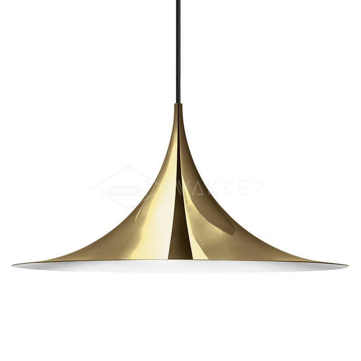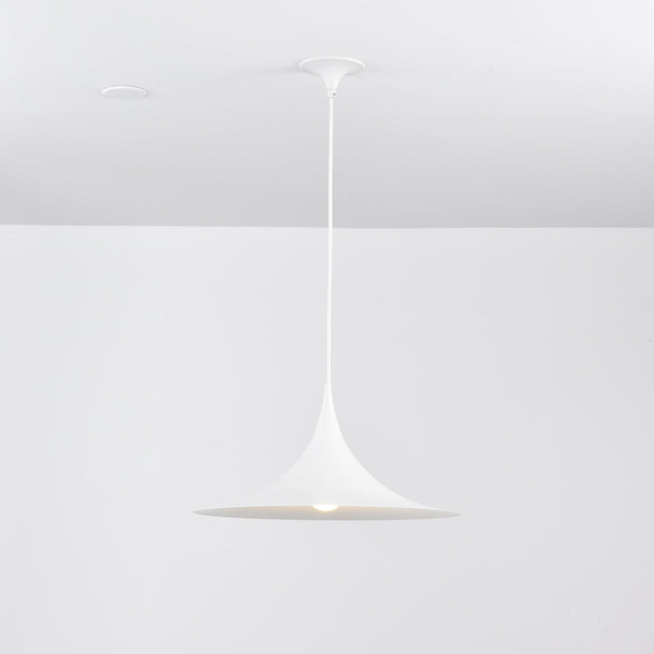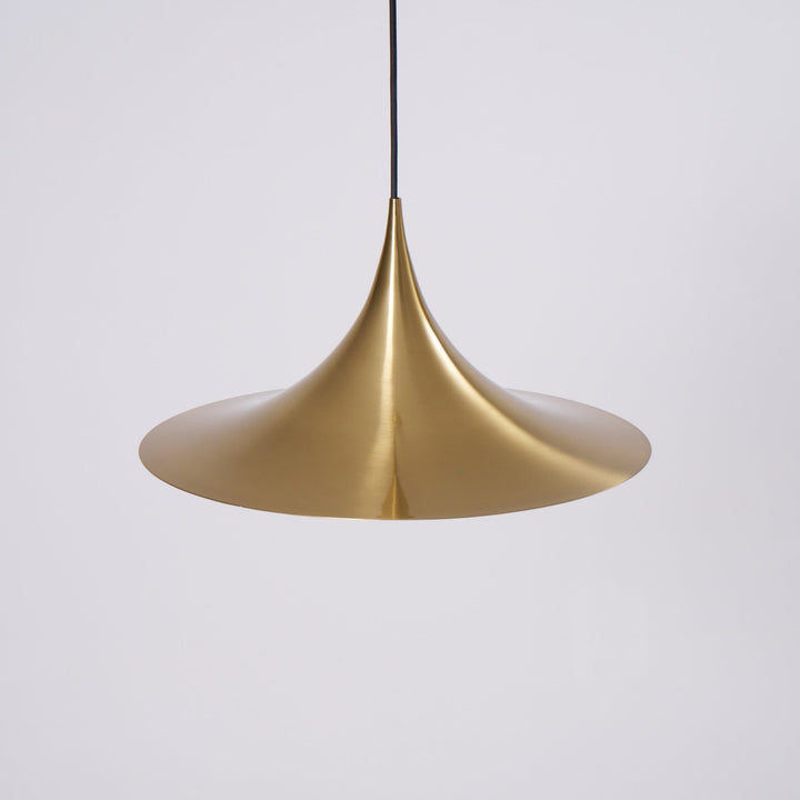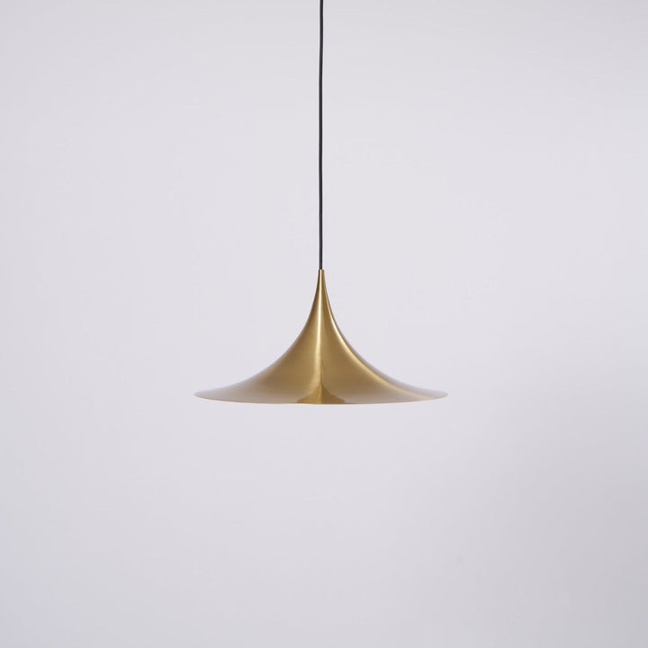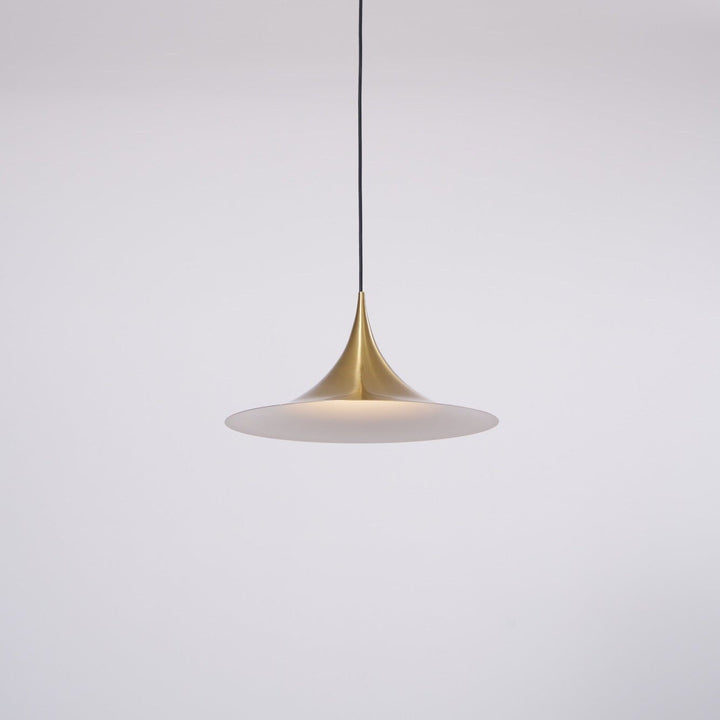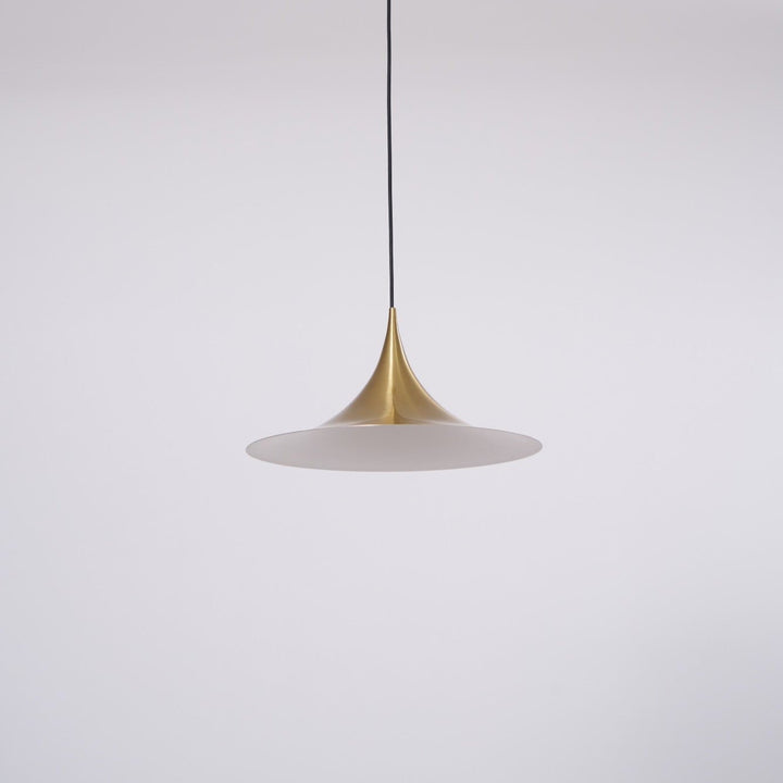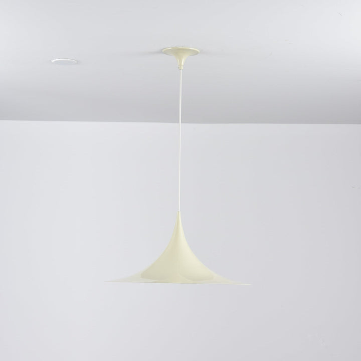 Semi is a unique pendant lamp, based on two quarter-circles put together, back-to-back. With its distinctive arch-shaped, enameled metal shade, lightness of form and unique, timeless design, the elegant Semi lamp achieved great success in the 1980's and became, at that time, the best-selling Danish design, gaining worldwide recognition and iconic status. It´s distinctive arch-shaped shade in lacquered, spun aluminum creates a diffused, cone-shaped light, ideal over a dining table or kitchen work surface.