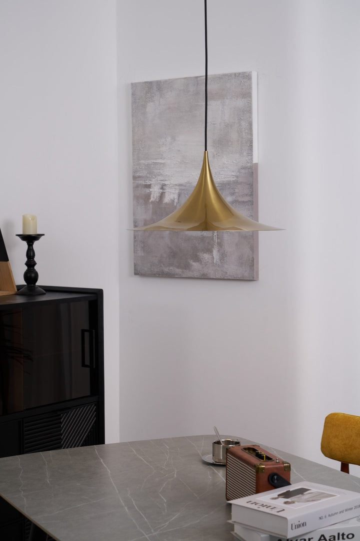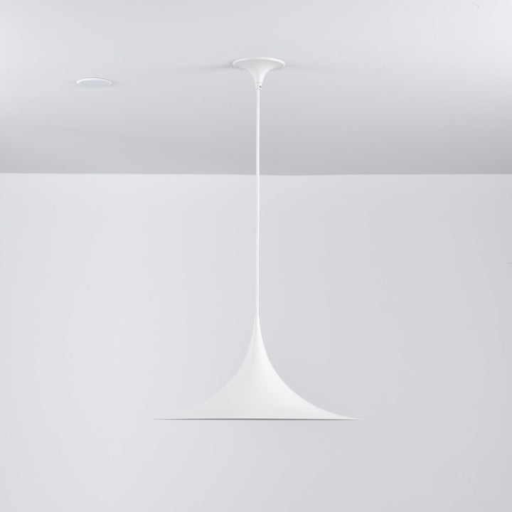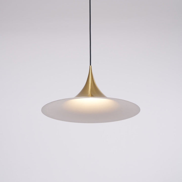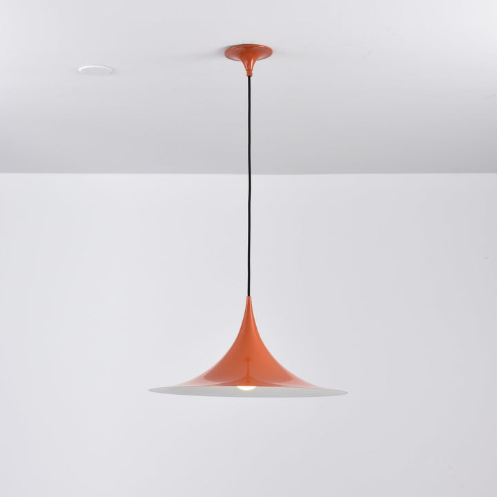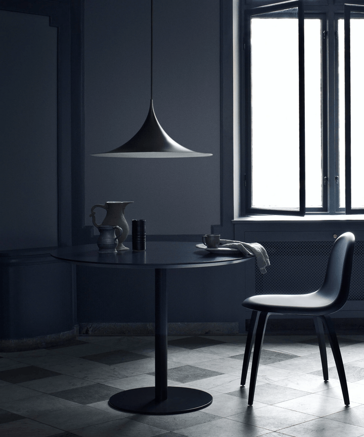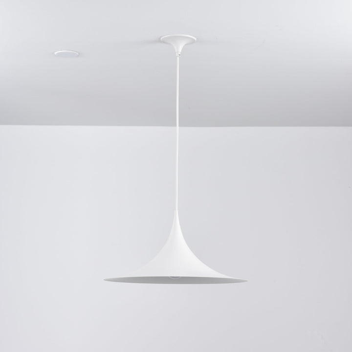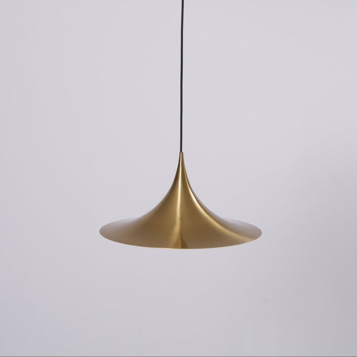 Semi is a unique pendant lamp, based on two quarter-circles put together, back-to-back. With its distinctive arch-shaped, enameled metal shade, lightness of form and unique, timeless design, the elegant Semi lamp achieved great success in the 1980's and became, at that time, the best-selling Danish design, gaining worldwide recognition and iconic status. It´s distinctive arch-shaped shade in lacquered, spun aluminum creates a diffused, cone-shaped light, ideal over a dining table or kitchen work surface.