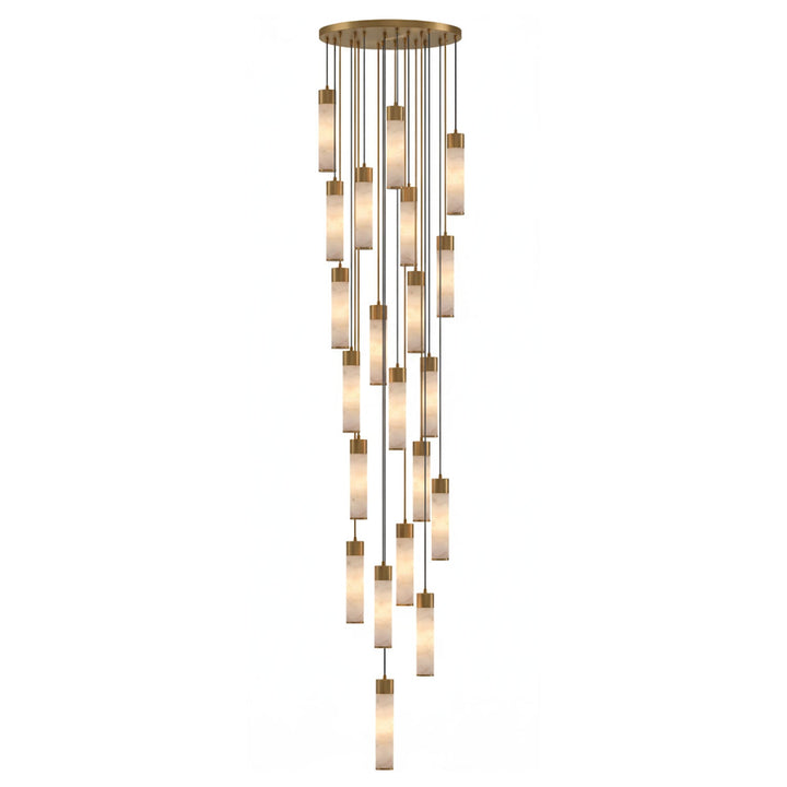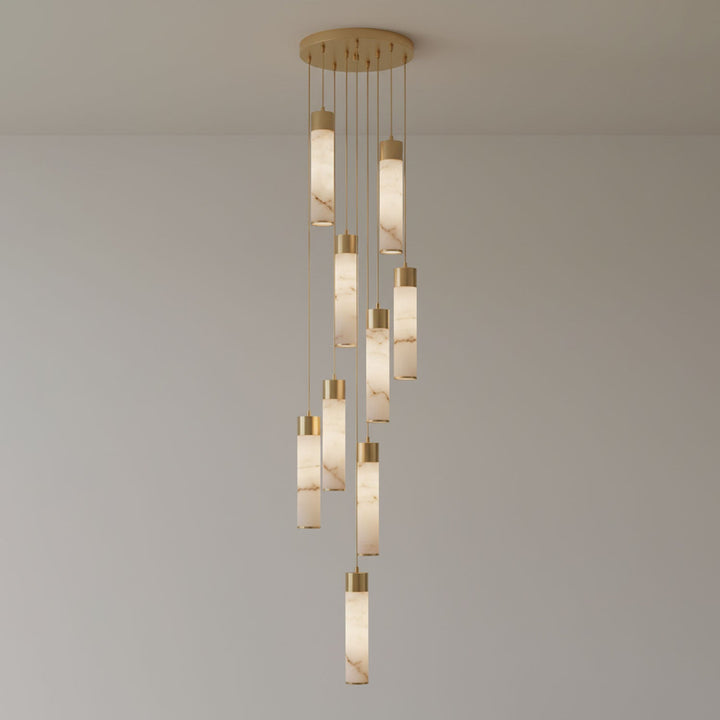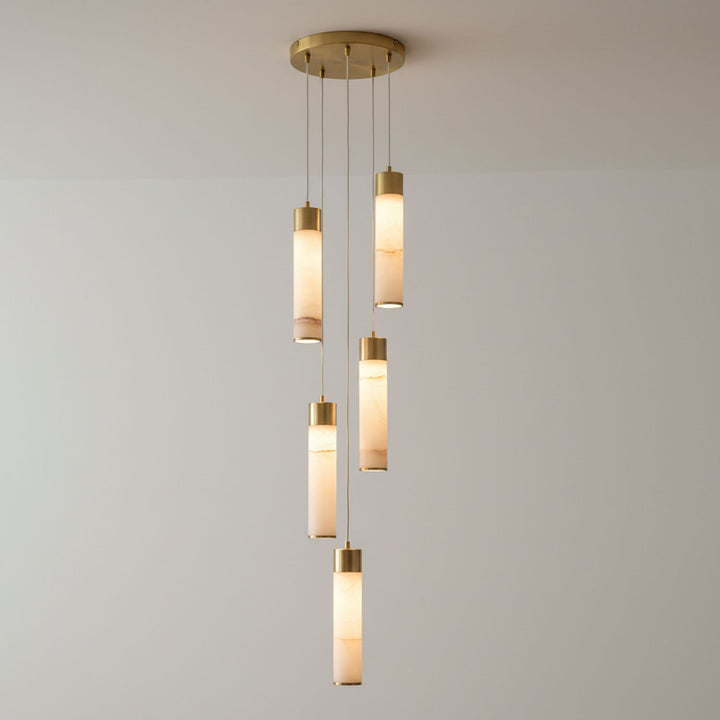 Textured on the Alabaster faces and polished at the ends, the bases are outfitted with a gently faceted made of with Brass finish. We love the ambient glow and organic accent that this pendant lamp provides to modern living spaces.