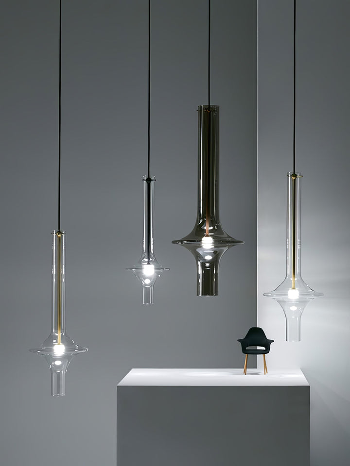 As a perfect blend of form and function, the Wonder Suspension Lamp features a stunning painted structure and canopy, crafted from transparent or smoked borosilicate glass. Its LED dimming light source comes in a variety of versions and levels. With various sizes and finishes available, it is sure to elevate any space.