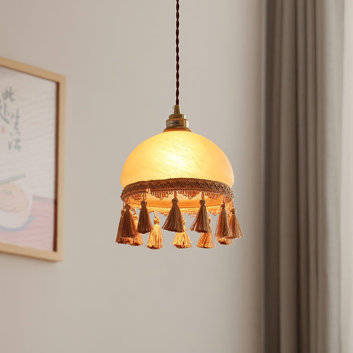 These pendants are inspired by the decadence of Victorian design and combine a contemporary free blown form with decorative fabric trimming. colorful style to your home.
