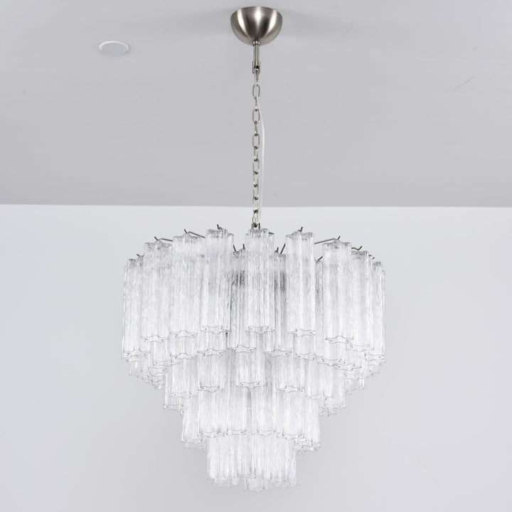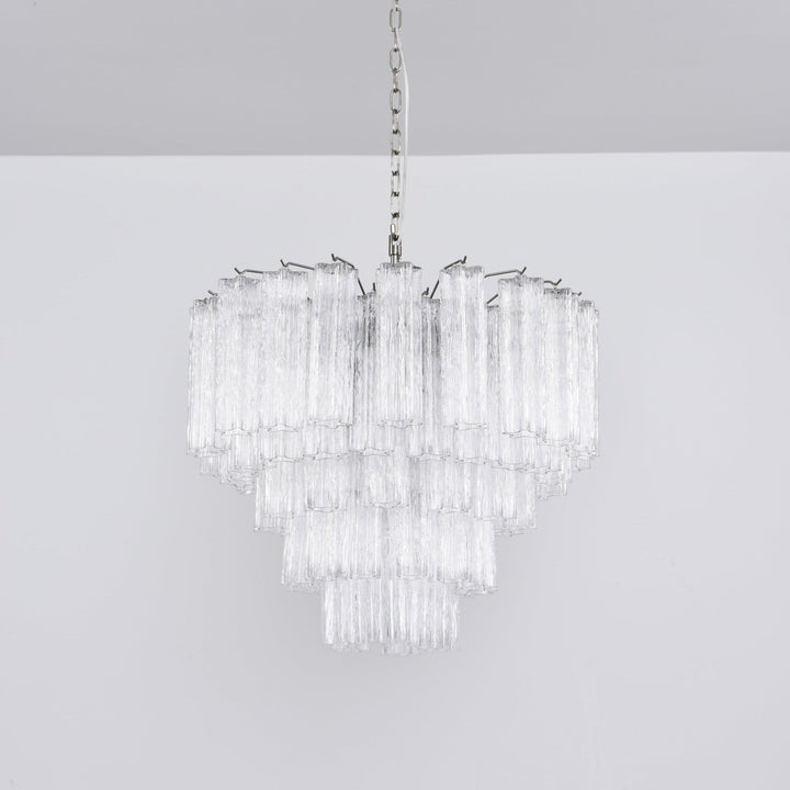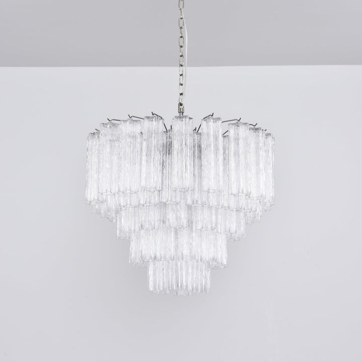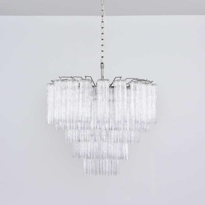 The Lucente Murano Chandelier is a celebration of refined craftsmanship and timeless elegance. With tiered hand-blown glass bars in a clear icy finish, this grand design radiates a crystal-like glow—perfect for upscale interiors, dining halls, or luxury hotel spaces.