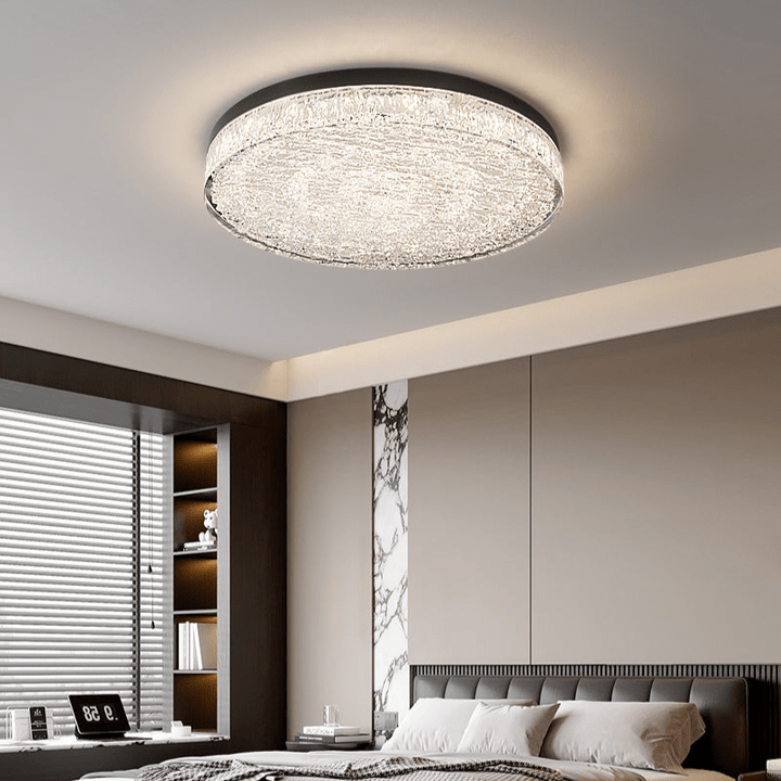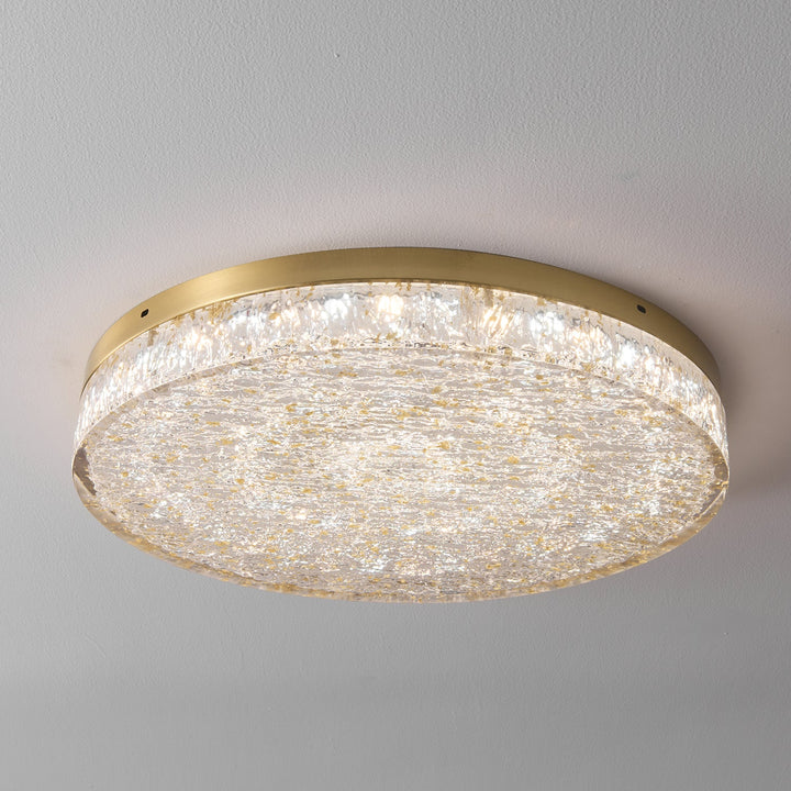Introducing the Crystal Core Ceiling Lamp - a perfect blend of modern art and sophistication. The sleek brass detailing adds a touch of luxury, while the resin lampshade diffuses light in a warm and unique way, creating a cozy and layered atmosphere. Elevate any room with this elegant and stylish lamp.