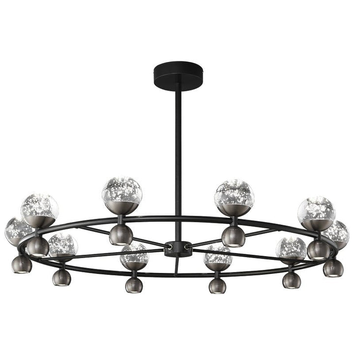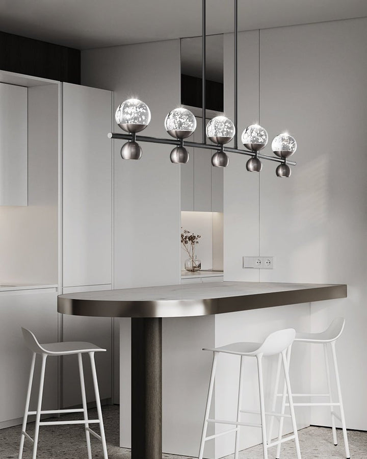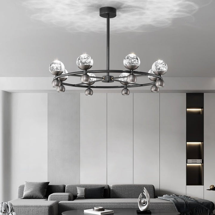 The Crystal Nebula Chandelier is a dazzling fixture that mimics the mesmerizing beauty of a nebula. Each sphere is meticulously crafted from glass, creating an illusion of stars encapsulated within. This chandelier's unique design provides a cosmic touch to your decor, ideal for those who appreciate both modern and whimsical aesthetics.