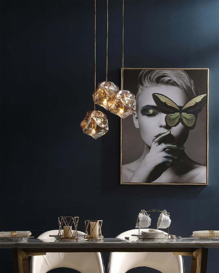 The Illyria Ice Glass Pendant Lamp is an exclusive piece that brings subtle sophistication to any setting. Crafted with distinctive mouth-blown glass, this hanging lamp features a form that is as captivating as it is enchanting. A small opening allows for a light source to be discreetly placed within, providing a glimmer of illumination that is sure to fascinate.