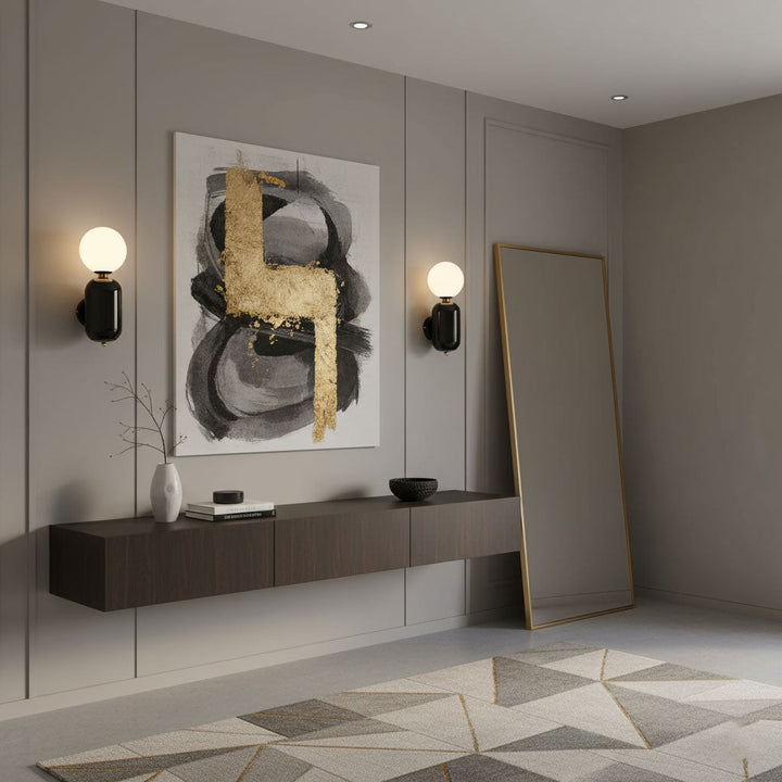 Expertly crafted with a blend of traditional blown glass art and modern design, the Kade Wall Light by Vakkerlighting is the perfect addition to any residential or commercial space. Featuring a polished metal frame and diffuser, with the option of a gold, white, or black base, this light emits a warm and inviting ambient glow.